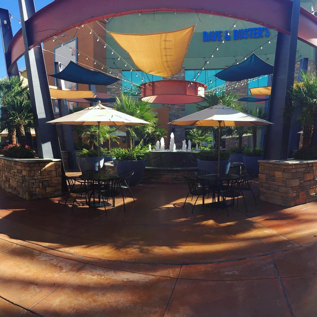 The Desert Ridge Marketplace in Phoenix, Arizona has something for everyone in their 1.2 million square feet of retail space. For the human kids, there is a splash pad and playground. For the furry ones, there is a PetSmart. Marketplace is host to live music every Friday and Saturday night, beginning at 7:00 PM. Dogs are welcome to the marketplace, but they must be leashed, and individual stores and restaurants have their own policies whether or not they allow dogs inside.