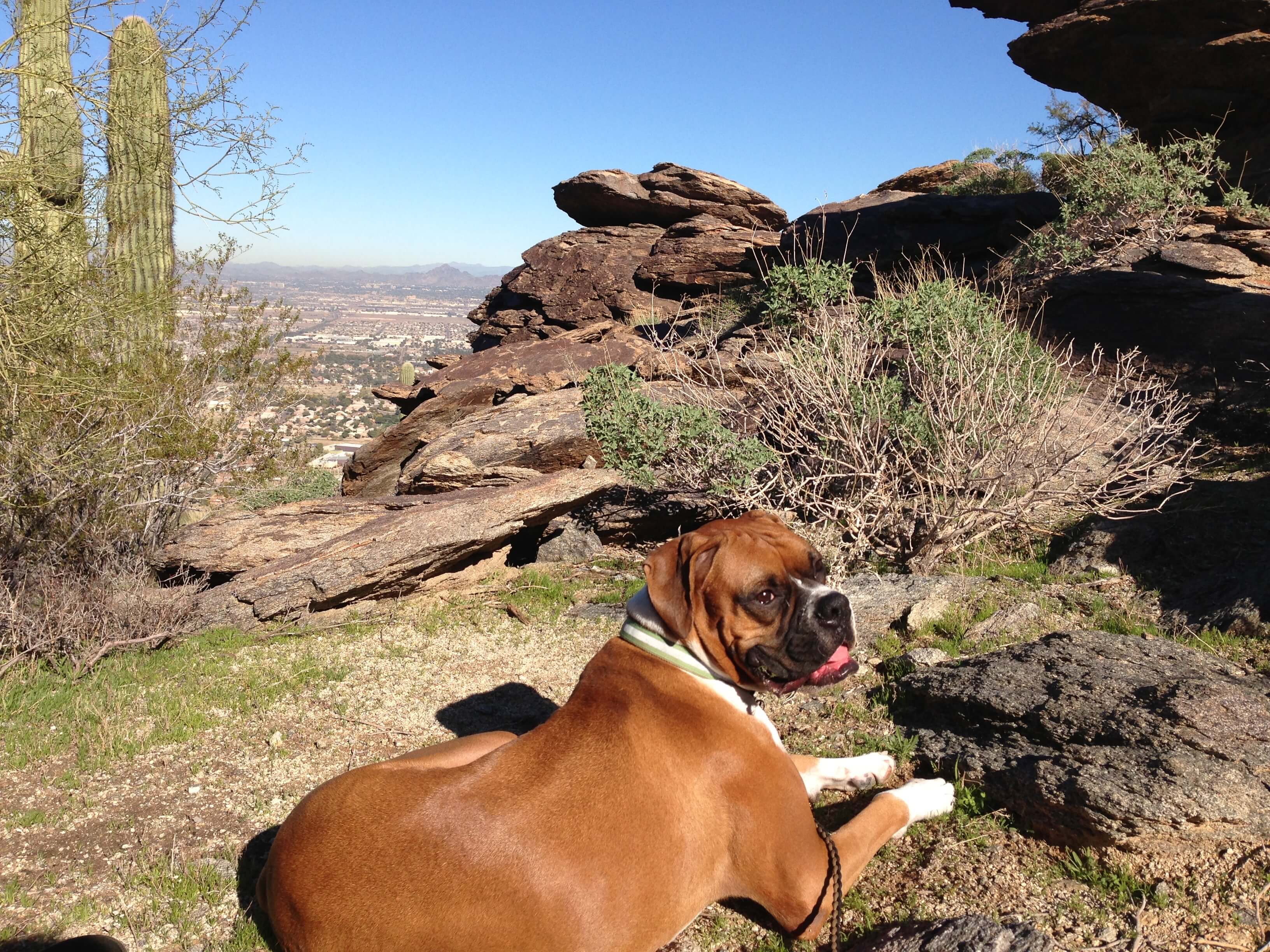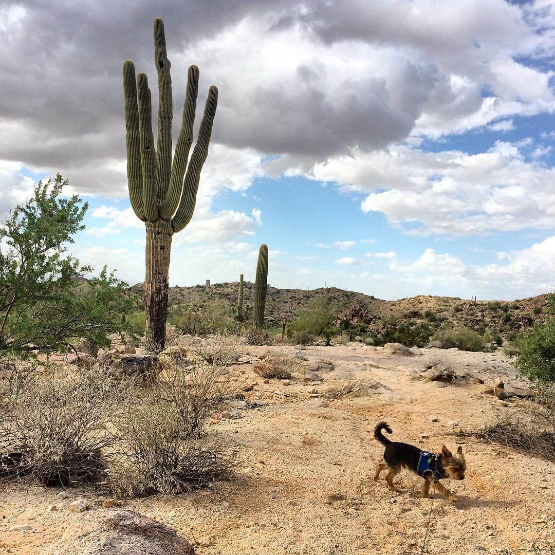 South Mountain Park and Preserve has over 51 miles of primary trails for you and your pup to explore. Not a hiker? Take the Summit Road to Dobbins Lookout for amazing valley views or to Gila Lookout for a view of the Gila River Valley. Once a month, South Mountain Park offers Silent Sunday, a day in which the park's main access roads are reserved for non-motorized uses and motorized vehicles are not allowed on the roads. Phoenix leash laws apply to all hiking trails, and pets must be leashed at all times.