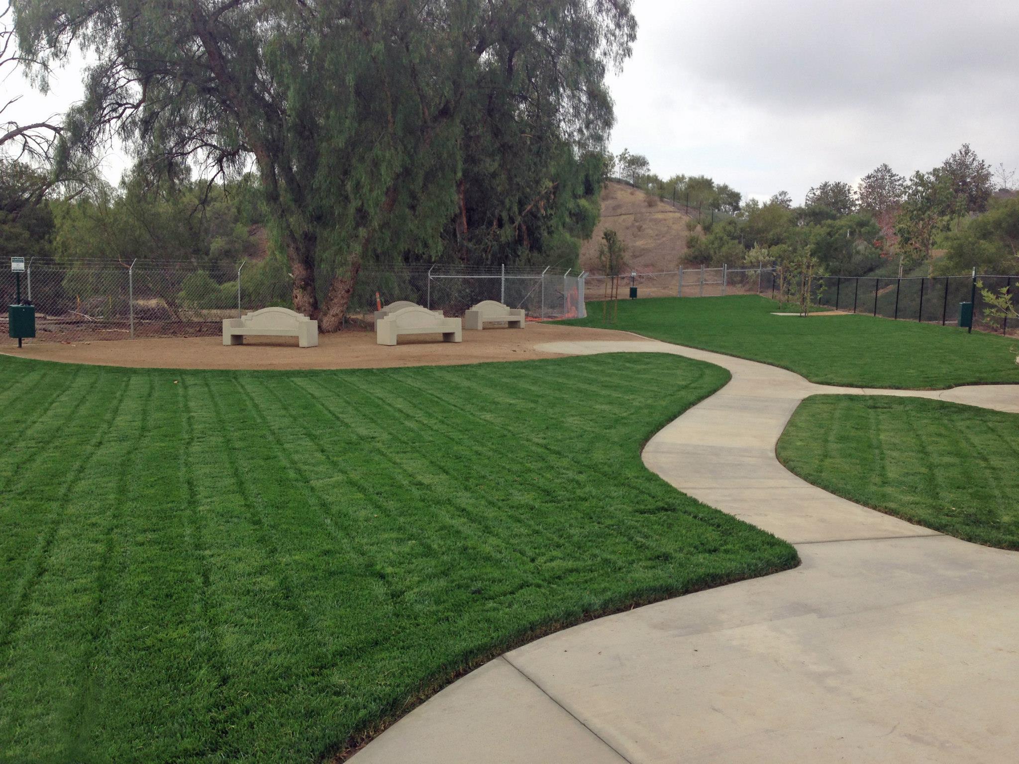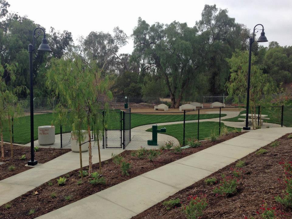 Wildcatters Dog Park features separate areas for small and large dogs, double-entry gates, picnic tables, benches, drinking fountains, and waste cleanup stations.