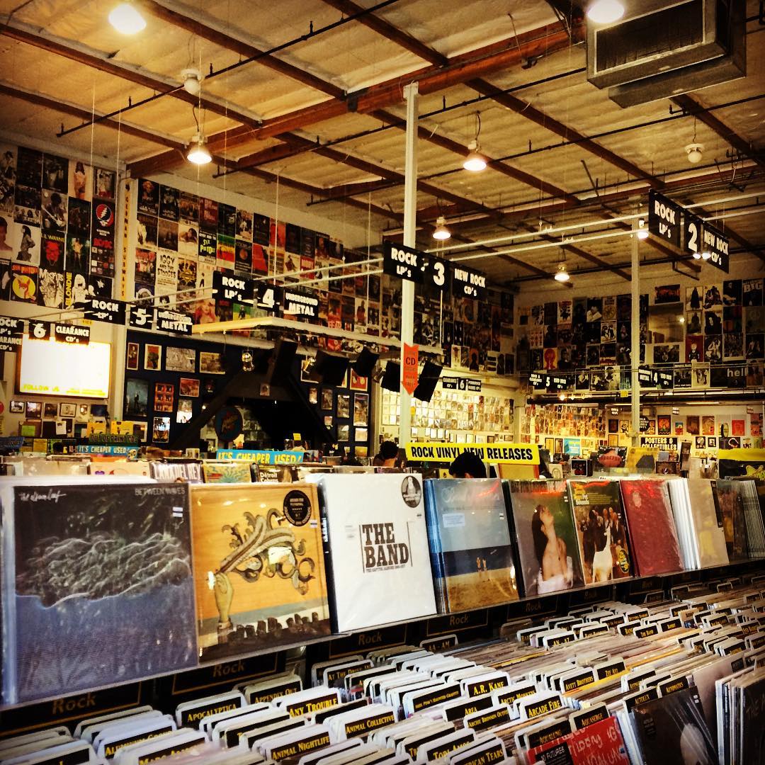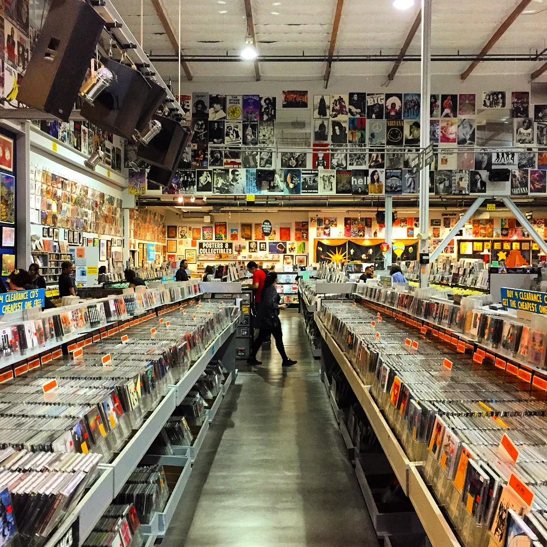 The World's Largest Independent Record Store! In November 2001 Amoeba Music opened its biggest store yet, on Sunset Boulevard in downtown Hollywood. Occupying an entire city block, this store houses the biggest, broadest, most diverse collection of music and movies ever seen on under one roof. Altogether, our 2 shopping floors and our Jazz room boast millions of titles on CD, DVD and vinyl, new and used, and our stock changes as fast as our customers bring in their old collections. Dogs are always welcome at Amoeba Music!