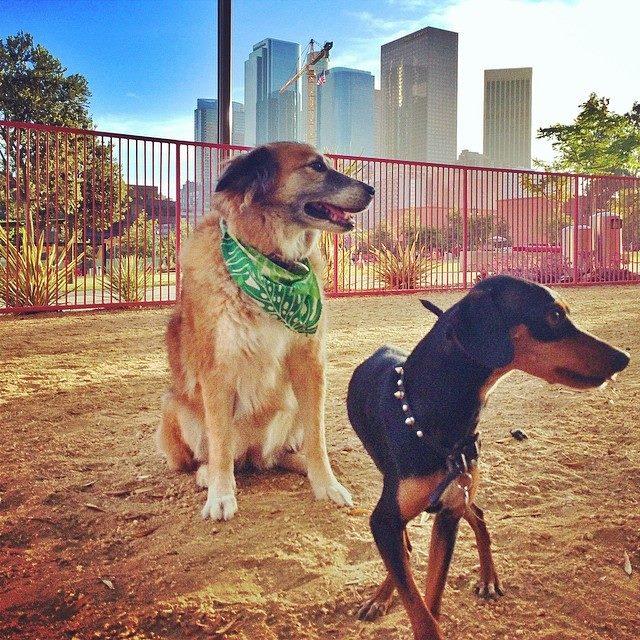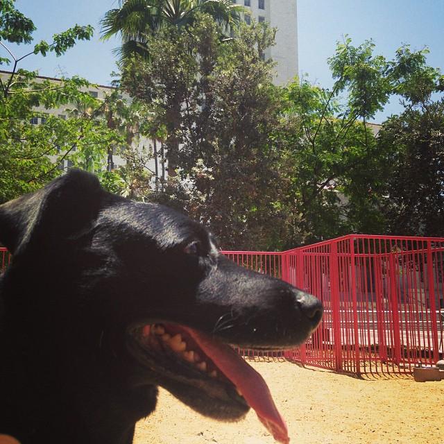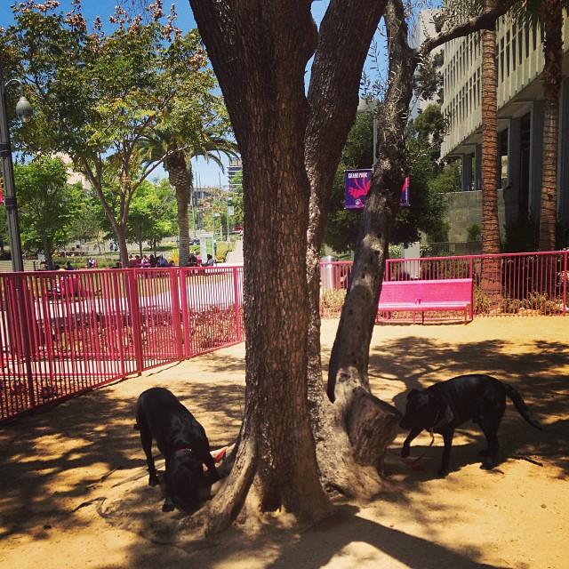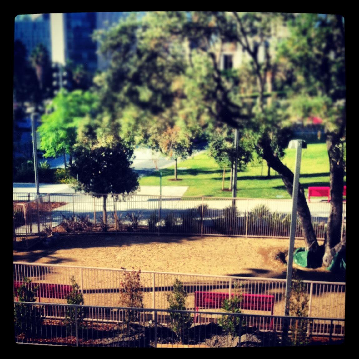 This huge park in the middle of the city has a small, but gated off-leash dog area. There are plenty of benches, and it's clean and well-lit at night. The dog area is nearest to Spring Street facing City Hall.