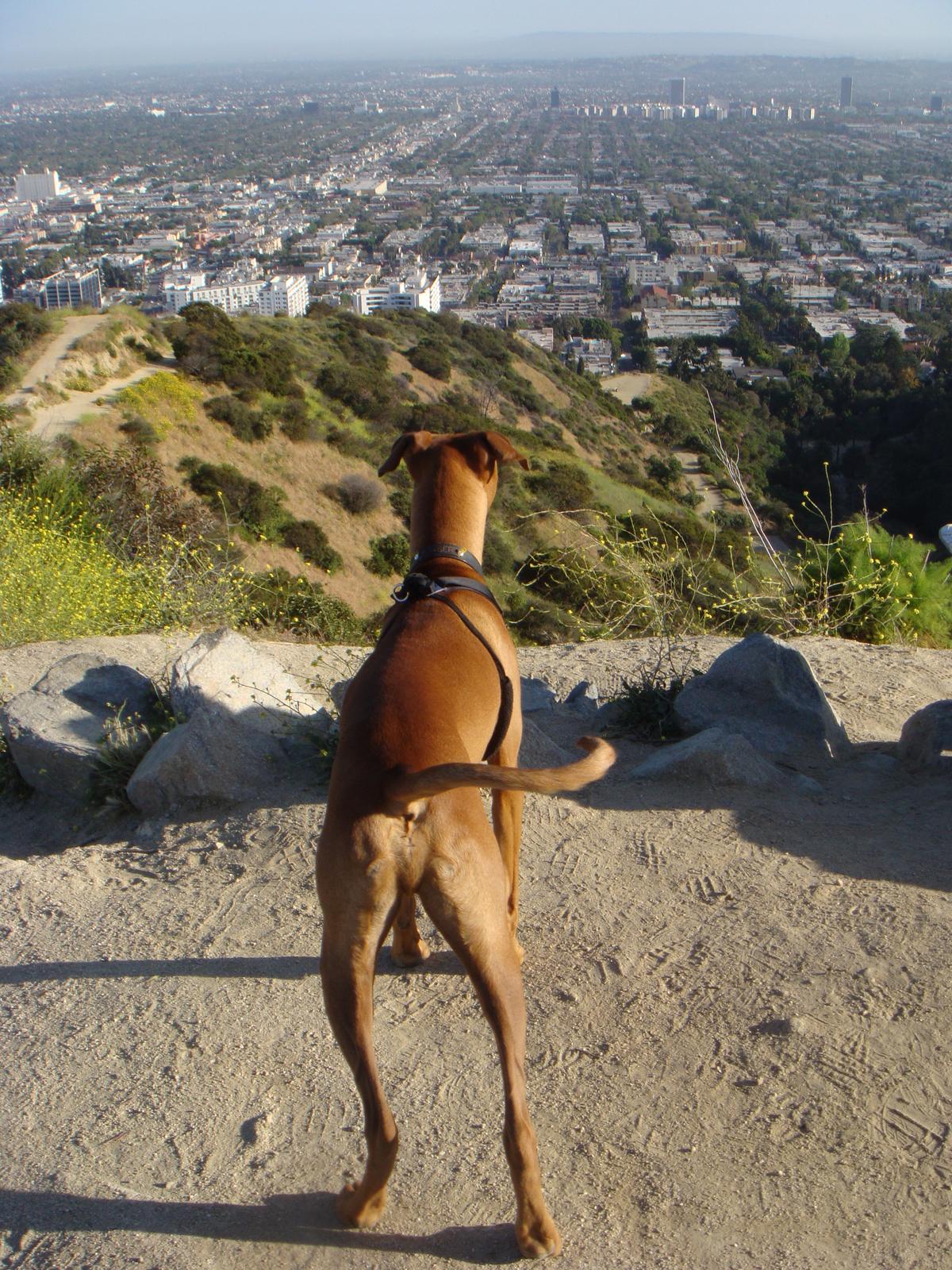 Runyon Canyon Park is a 160-acre city park near Hollywood and the Hollywood Hills. The park features a 90-acre off-leash dog park with an abundance of hiking trails. Although Fido does not need to be kept on a leash, owners must clean up after their pets. Baggie stations are located throughout the park.