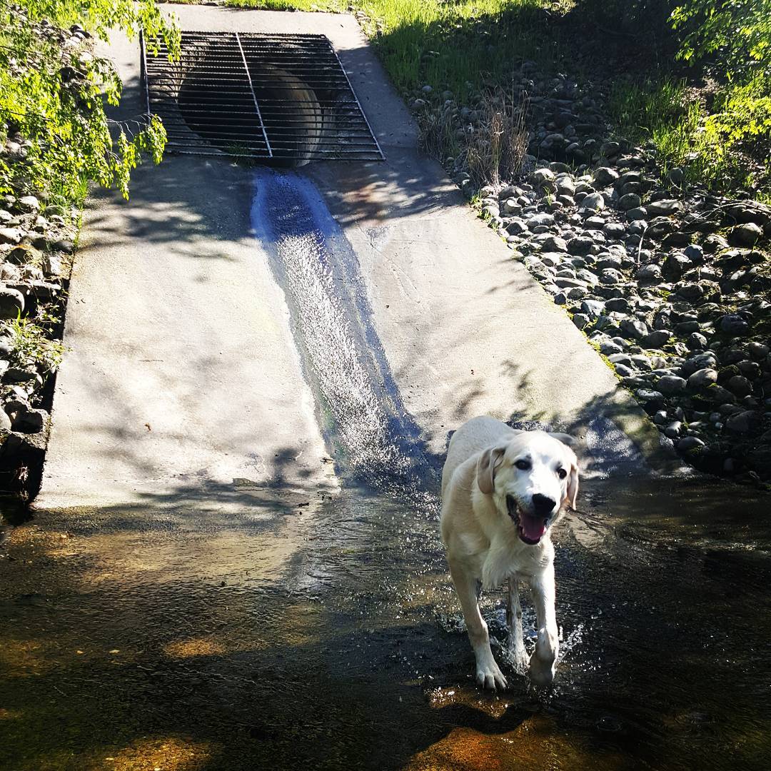 This large, fenced, off-leash dog park is full of hilly terrain and owners often bring wading pools on hot days.
