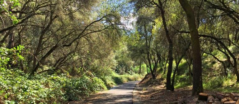 The Dragoon gulch Trail is located in the City of Sonora, Ca. Named for a group of dragoons (US Army cavalry soldiers) who once mined the area for gold, the existing trail network provides visitors with a unique opportunity stroll through the Mother Lode’s beautiful oak woodlands. The 2.5-mile loop trail travels along a natural creek up to a vista that provides a spectacular view of Sonora’s Historic Downtown along with the surrounding mountain ranges. The trails vary in difficulty making it the perfect location for both the causal walker and those eager for a strenuous hike. There two entrances with one designated ADA with parking area and paved trails. Leashed dogs are welcome on the trail.