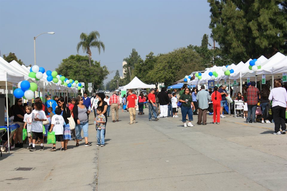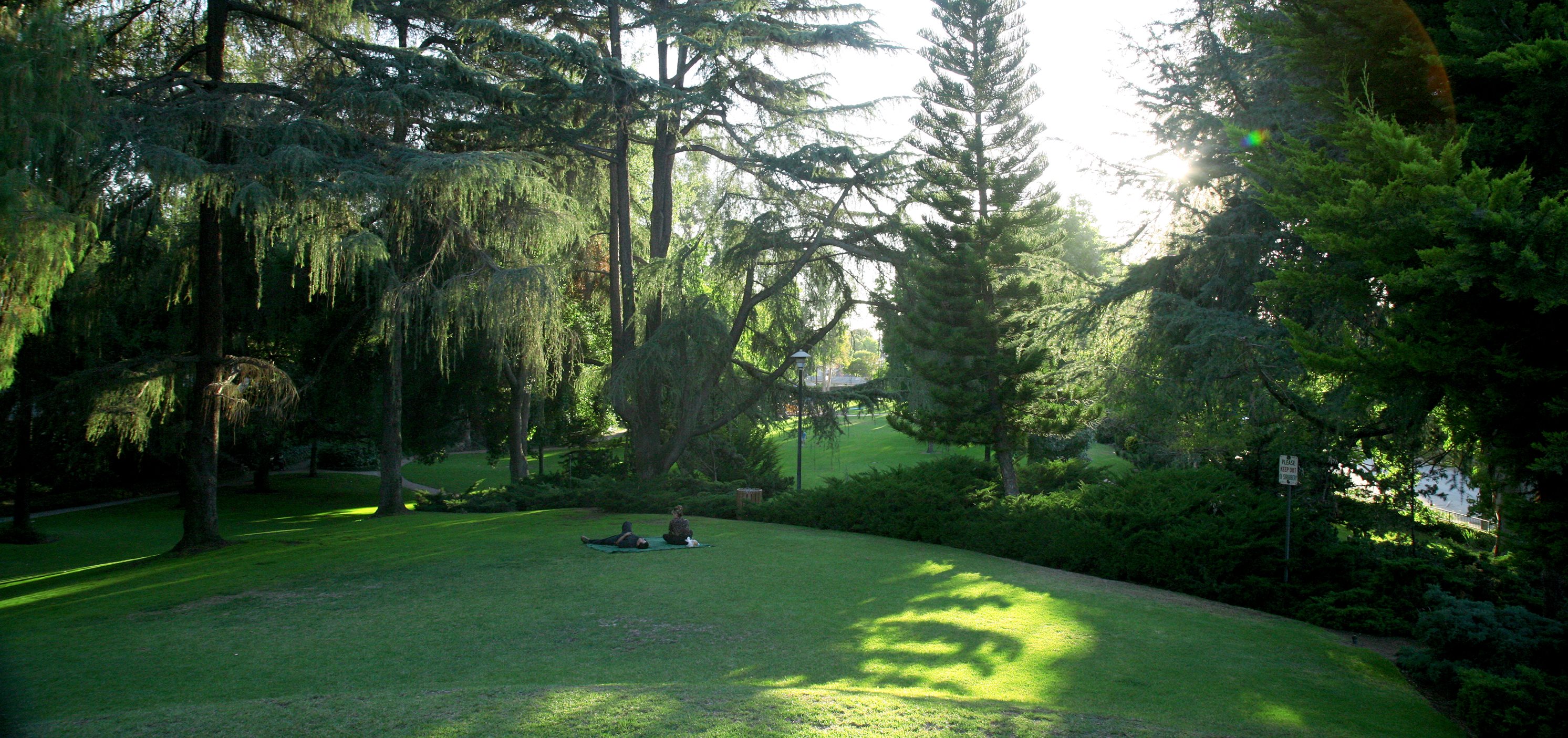 Whittier Dog Park features separate areas for small and large dogs, cement benches, shaded areas, and water spigots.