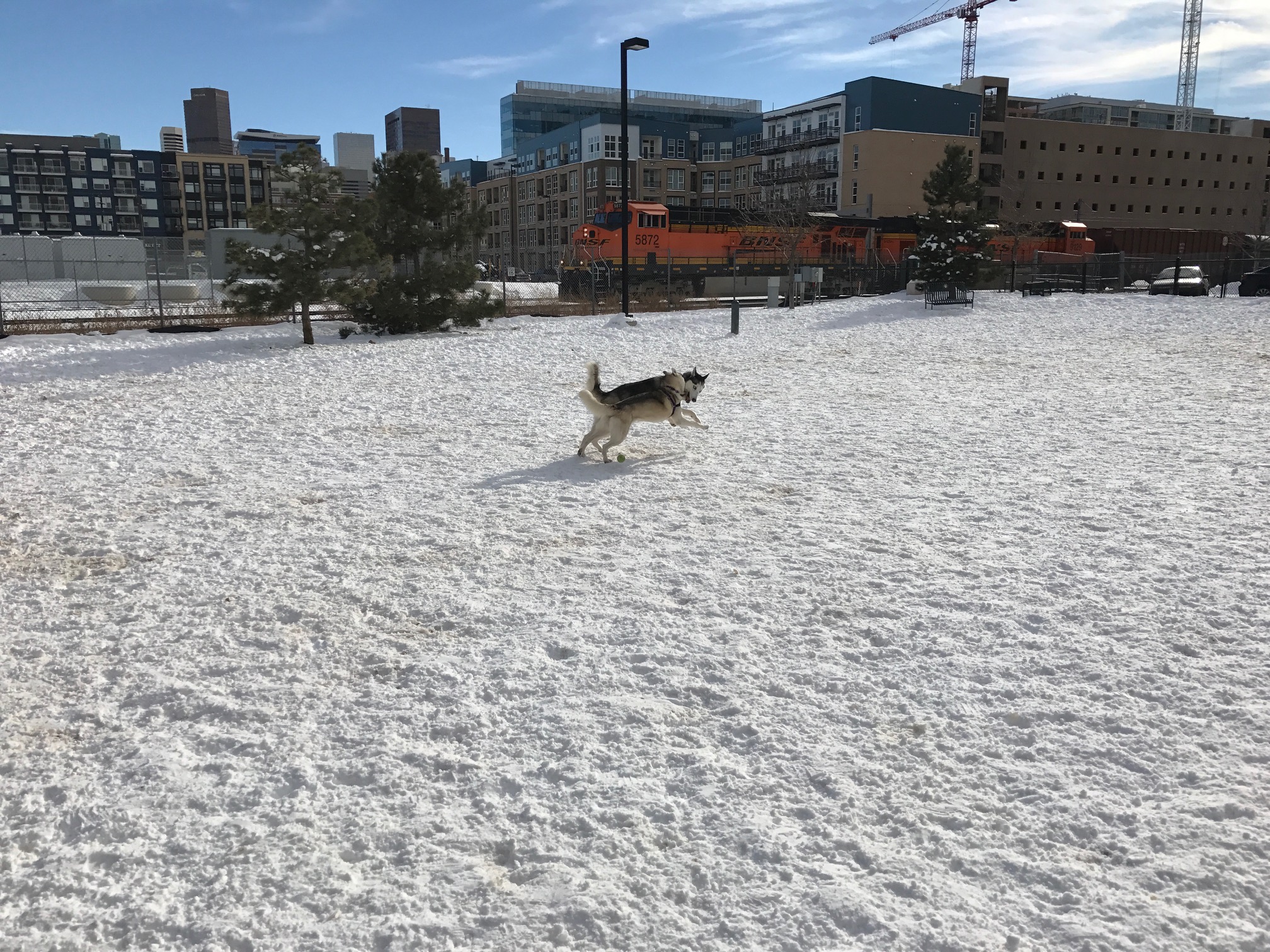 Railyard Dog Park is an fenced, off-leash dog park with separate areas for high energy and low energy dogs. The ground surface at this park is a soft, sandy soil rather than grass. Other features of the park include shaded areas, benches, and a water fountain. The water fountain is not always in service, so bring plenty of water for your pup. Please be a responsible pet owner and clean up after your pet.