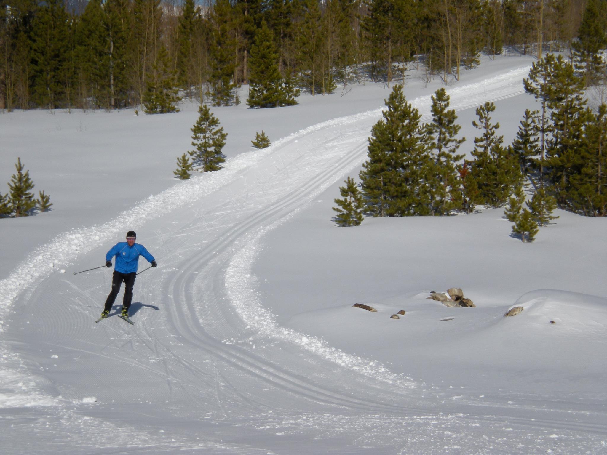 You and Fido can enjoy a self-guided snowshoe adventure along the snowshoe trails or skiing on peaks 6 and 7. Just keep your pup on a leash during your winter fun. High Country Dogs also offers public skijoring lessons at Frisco Nordic Center on occasion.