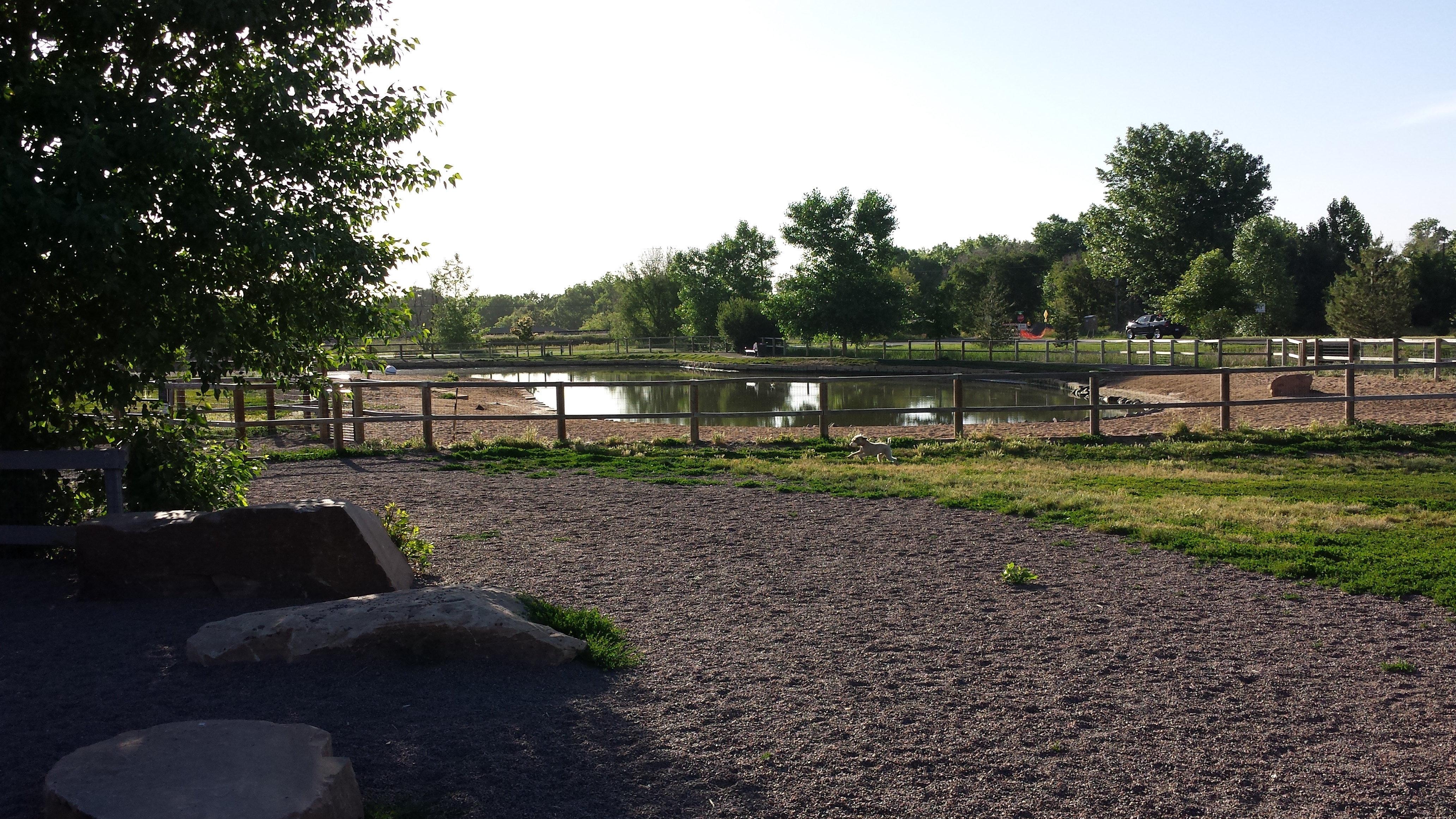 This fenced off-leash dog park is a great spot for pets to play, particularly in summer where owners may choose to let them swim in the fenced pond.