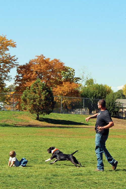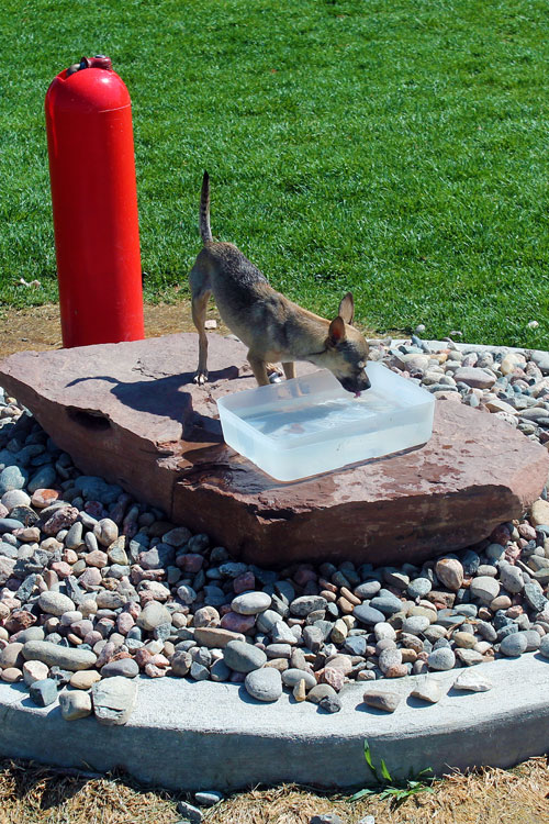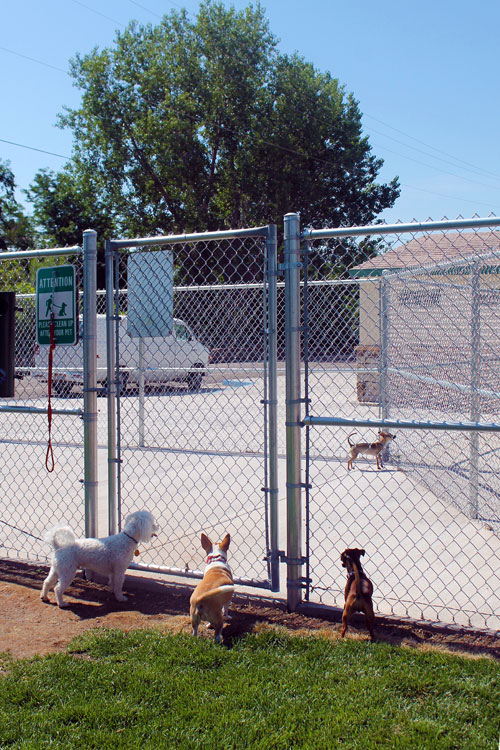 Pueblo's City Park Dog Park features separate fenced areas for small and big dogs, several trees, shady spots, restrooms, accessible pathways and sidewalks, and six bone-shaped park benches. The park even has doggie water fountains!