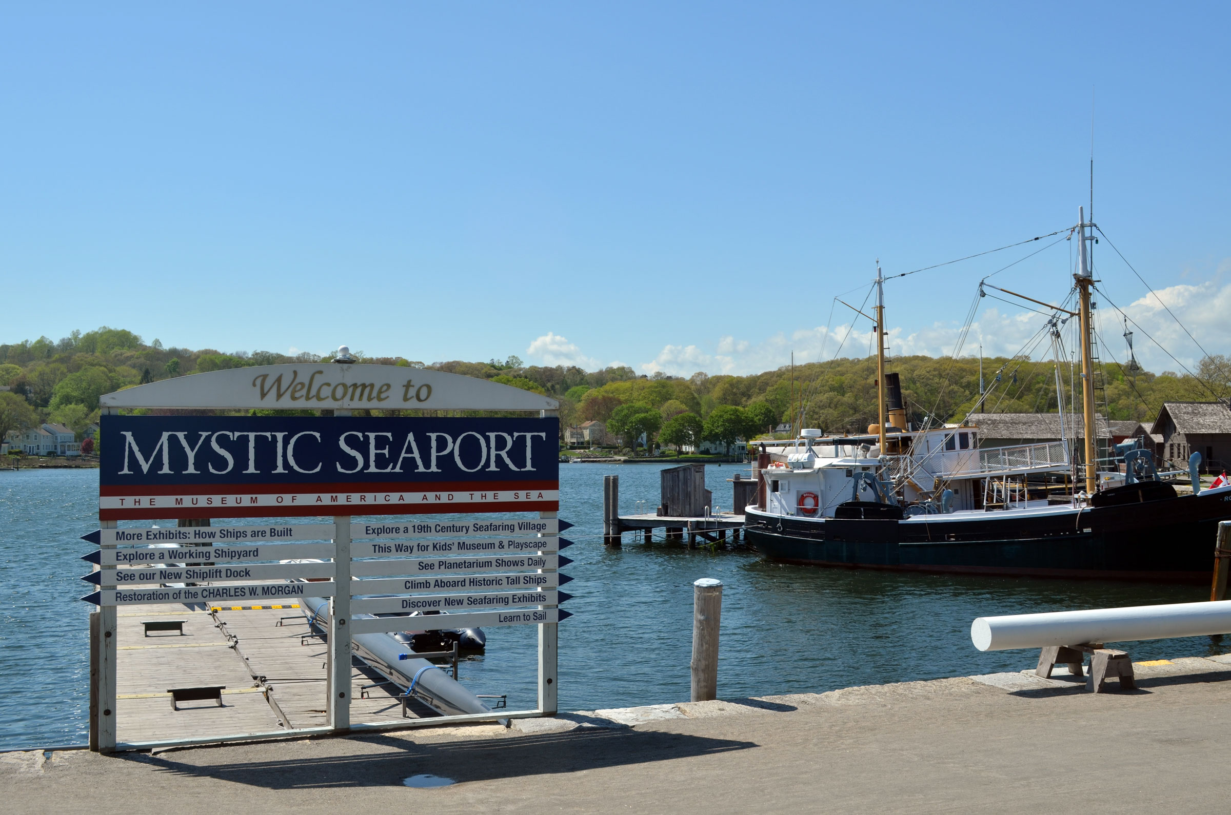 Walk the grounds of Mystic Seaport with your leashed pet and explore the museum's shipyard, nineteenth-century village re-creation, and nine gardens or enjoy a stroll along the river. Leashed pets are welcome on the museum grounds, although they are not permitted in any buildings or museum vessels.