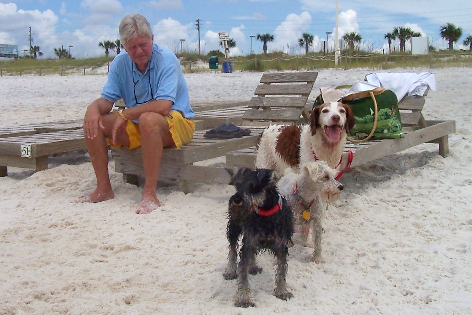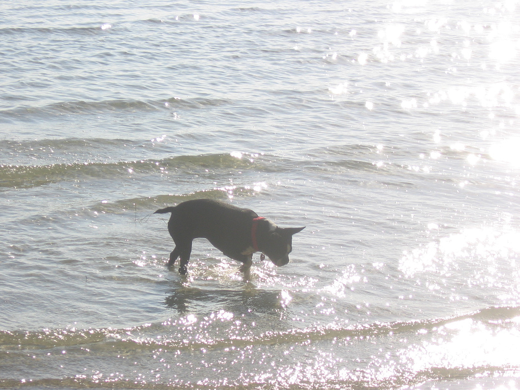 When standing in front of the city pier (on Front Beach Rd), the dog beach is located on the right side of the pier. Dogs must be kept on-leash and please keep the limit to 3 dogs per person.