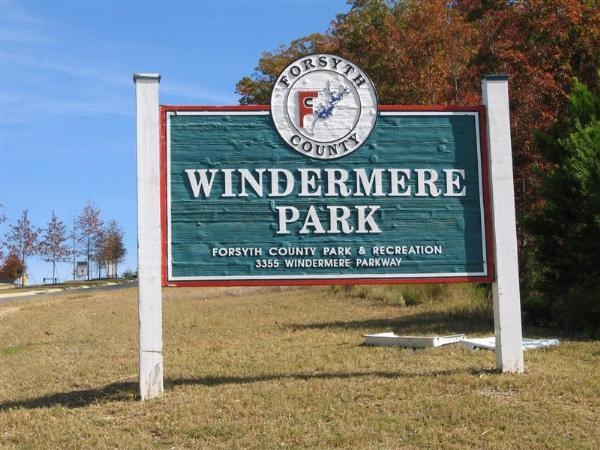 The Windermere Dog park is part of a larger park in Cumming GA. It has separate areas for small and large dogs. There is little shade, but it is a flat fenced in area where the dogs can run and play. There are benches for owners and a water area on both sides.