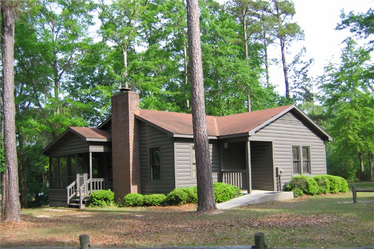 The Florence Marina State Park rests on the northern edge of Lake Eufaula. Park visitors enjoy geocaching and a 3/4 mile nature trail. A boat ramp and dock are available with 66 boat slips available for rent at the marina. Dogs must be on a leash no longer than 6 feet; however, they are not allowed in lodges, group camps, or swimming areas. For those interested in pet friendly accommodations, two select cottages allow up to 2 pets for an additional fee of $45.