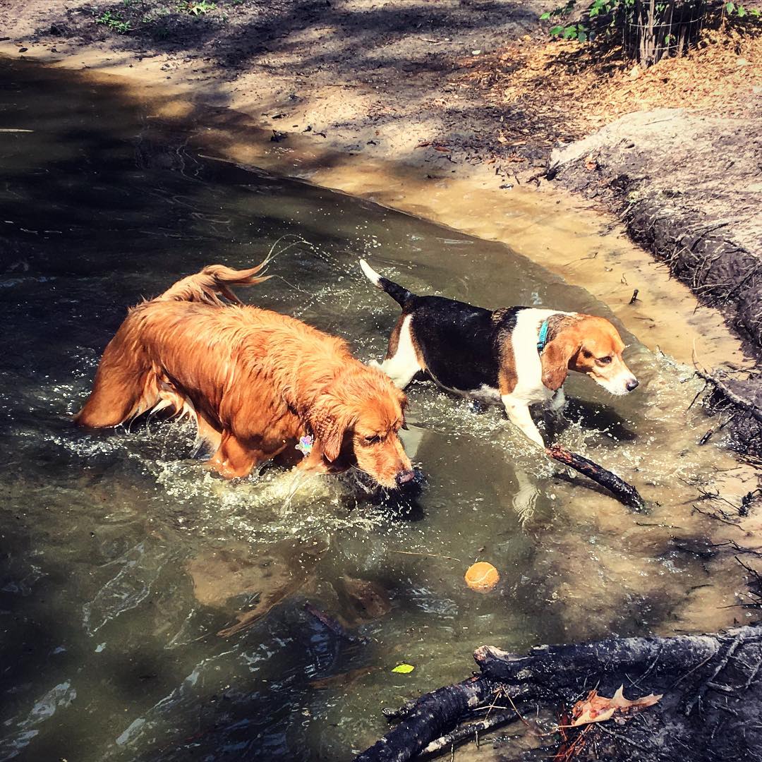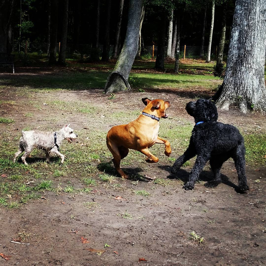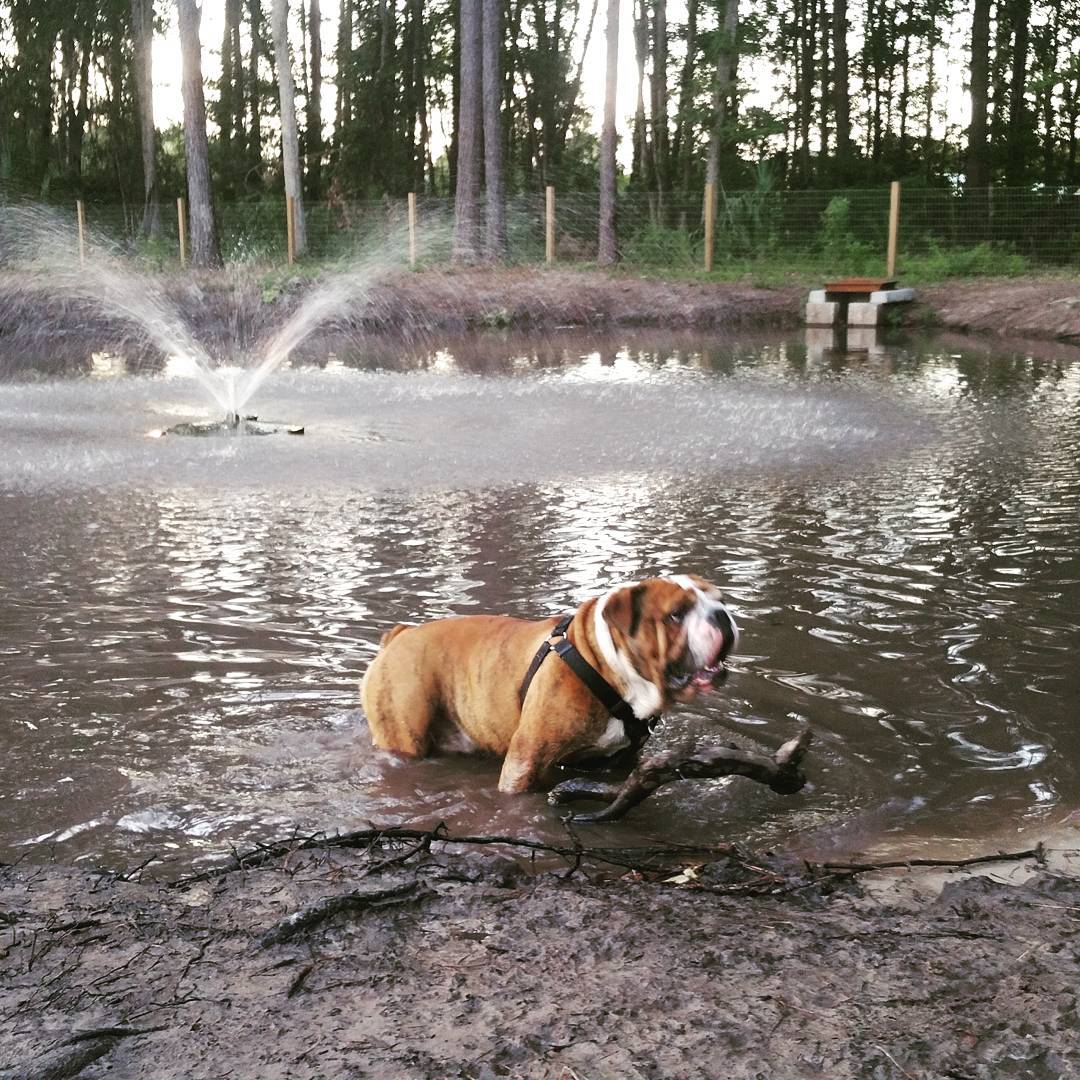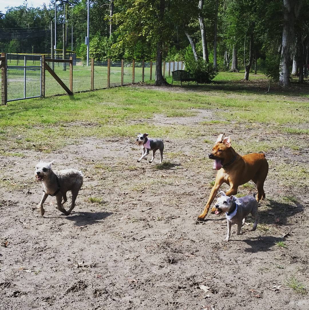 Dog park for any size dog. Has a large dog area and a small dog area. Has a little pond that's for the dogs to swim and play in with a fountain in the middle. The park is located behind the softball field at Henderson D. Park