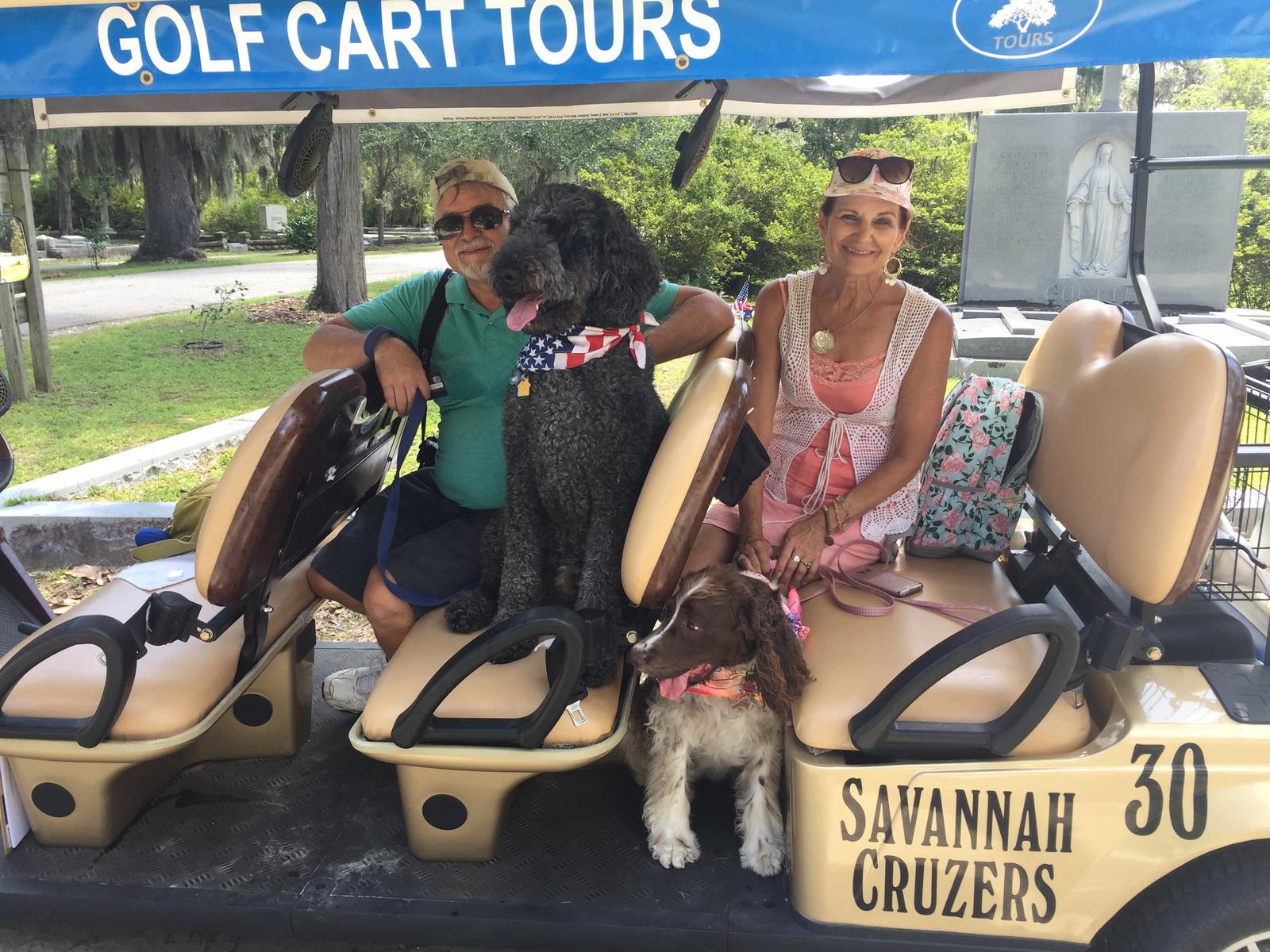 Bring Fido along on a golf cart tour of Bonaventure Cemetery with Savannah Cruzers. Savannah Cruzers states, "this Victorian Garden is a retreat from the hustle of Downtown and a dream for lovers of art, nature, and history." Tours are approximately one to one and a half hours, and five seats are available per tour. Dog owners are responsible for the safety and care of dogs while riding in the open vehicle and while on foot. Fido must be leashed during the tour. Interested parties can call Savannah Cruzers for pricing and available tour times.