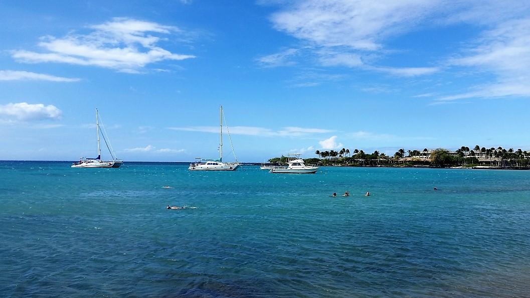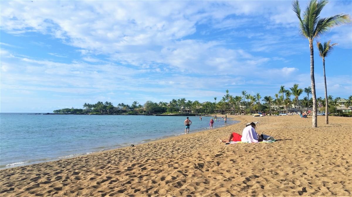 This is not a "dog beach" but leashed dogs are welcome on the south side (at Lava Lava Beach Club and the undeveloped south side portion) of the Bay. From Kona, take Highway 19 north toward the Waikoloa Beach Resort Area. Turn left at Waikoloa Beach Road (near Mile Marker #76). Turn left at the road across from Kings’ Shops (Follow the signs for “Lava Lava Beach Club.” Parking for the beach is at the end of this road. However, dogs are NOT allowed in the main beach parking lot, and security is strict.You can either drop off your dogs at Lava Lava Beach Club with a friend to hold them while you go back and park in the main parking lot OR you can park at Lava Lava Beach Club (LLBC) in the gravel overflow parking lot. Please stay on the south side (at Lava Lava Beach Club and the undeveloped south side portion) of the Bay