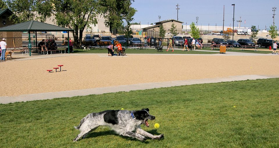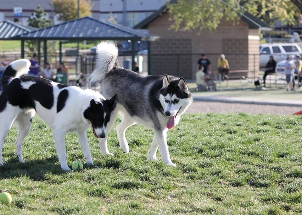 Visit Storey Dog Park in Meridian, Idaho. This 2.25 acre fully-fenced dog park features a safe leashing/unleashing area, separate large dog and small dog areas, shade shelters, a restroom building, people and doggy drinking fountains, agility playthings, paved walkways, a variety of ground surfaces, benches, mutt mitt stations, landscaping, dog-themed street signs, and more!