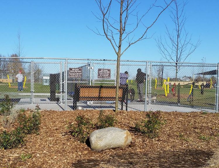 Fenced, off-leash dog park with separate areas for small and large dogs. Drinking fountains, waste receptacles, and shaded benches are also available.