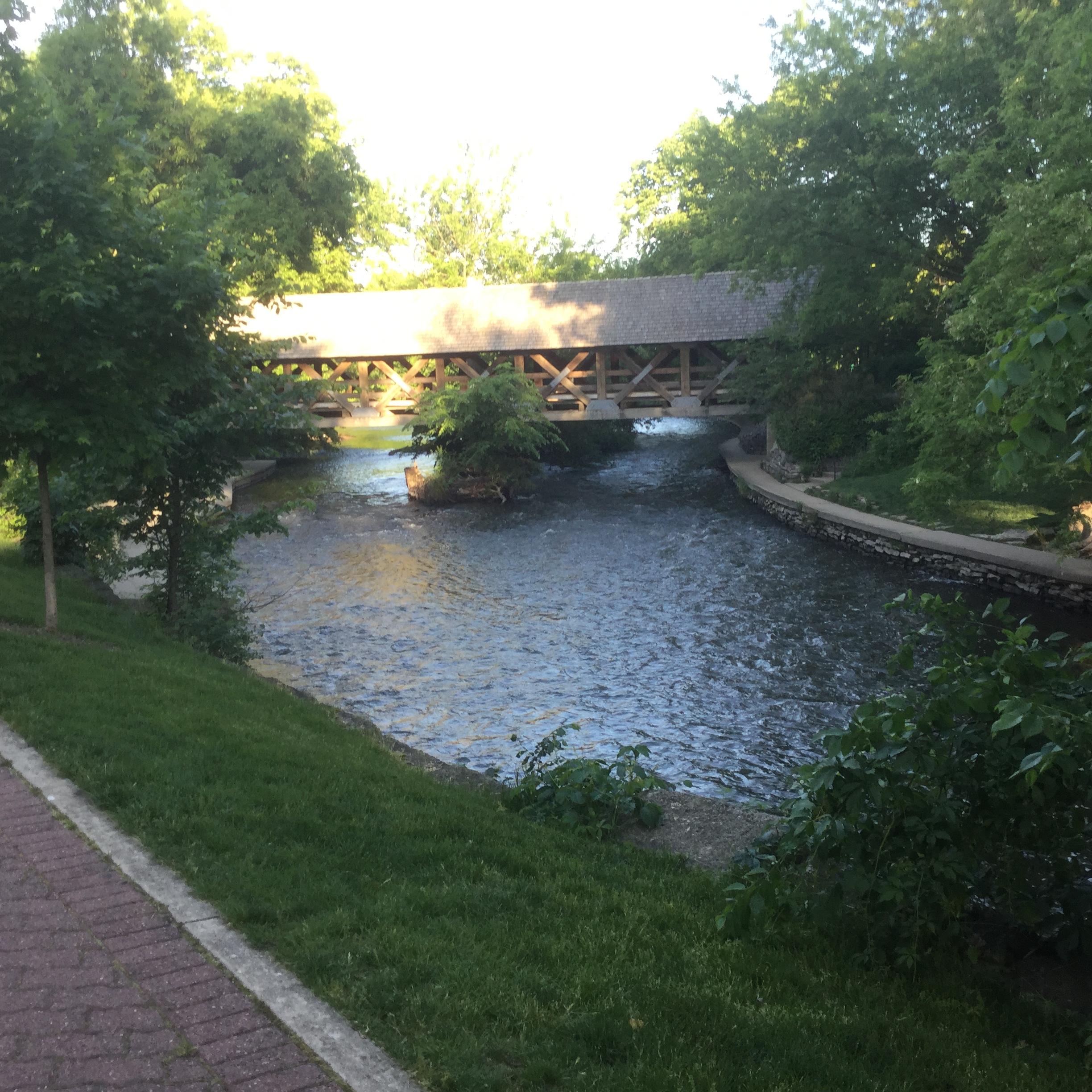 Naperville Riverwalk features 1.75 miles of brick paths, fountains, bridges, meeting and event places, outdoor sculpture and artwork, recreational facilities, and celebratory memorials. Leashed dogs are welcome on the Walk, and there is plenty of shade and water spigots available along the way. Great place unwind and relax. Nearby Riverwalk Cafe welcomes dogs on their patio and offers a simple doggie menu.