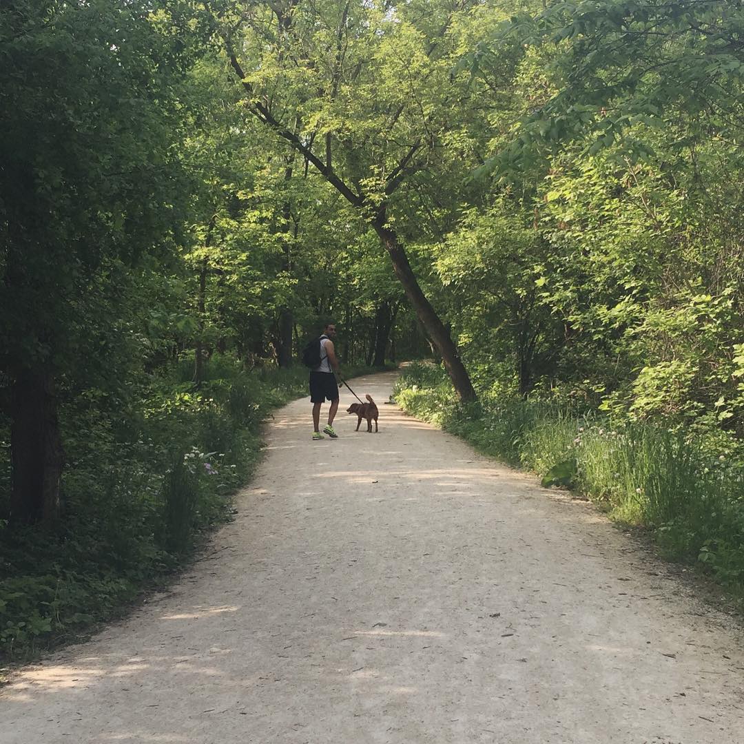 Fullersburg Woods is a Du Page County Forest Preserve with miles of multipurpose trails open to bicyclers, horseback riders, cross-country skiers, hikers and dog walkers. There is a section where dogs are not permitted because it is home to a lot of wildlife (signs are posted). You are expected to leash your dog, pick up after him, and keep him from swimming in Salt Creek. There are some water fountains, so bring a collapsible water bowl.
