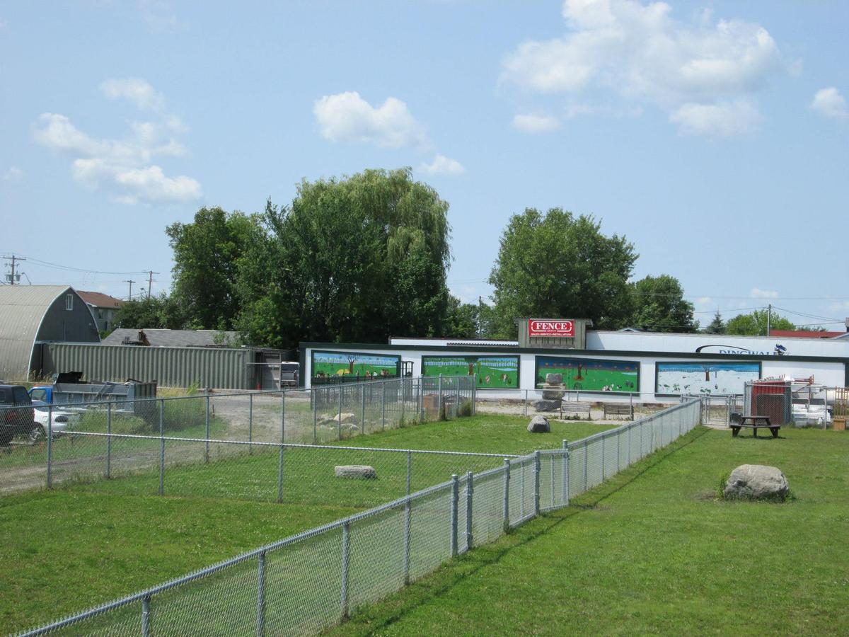 Additional amenities include benches, a shade sail, limestone seating blocks, and dog waste bag stations