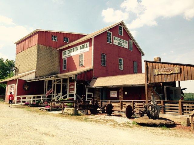 The oldest continually operating mill in Indiana. Indiana's most famous covered bridge. Located 20 miles NE of Terre Haute, IN on the Big Raccoon Creek. Pets are not allowed in the mill but you can sit outside and have homemade ice cream or swim in the creek. Check out the website at www.bridgetonmill.com.
