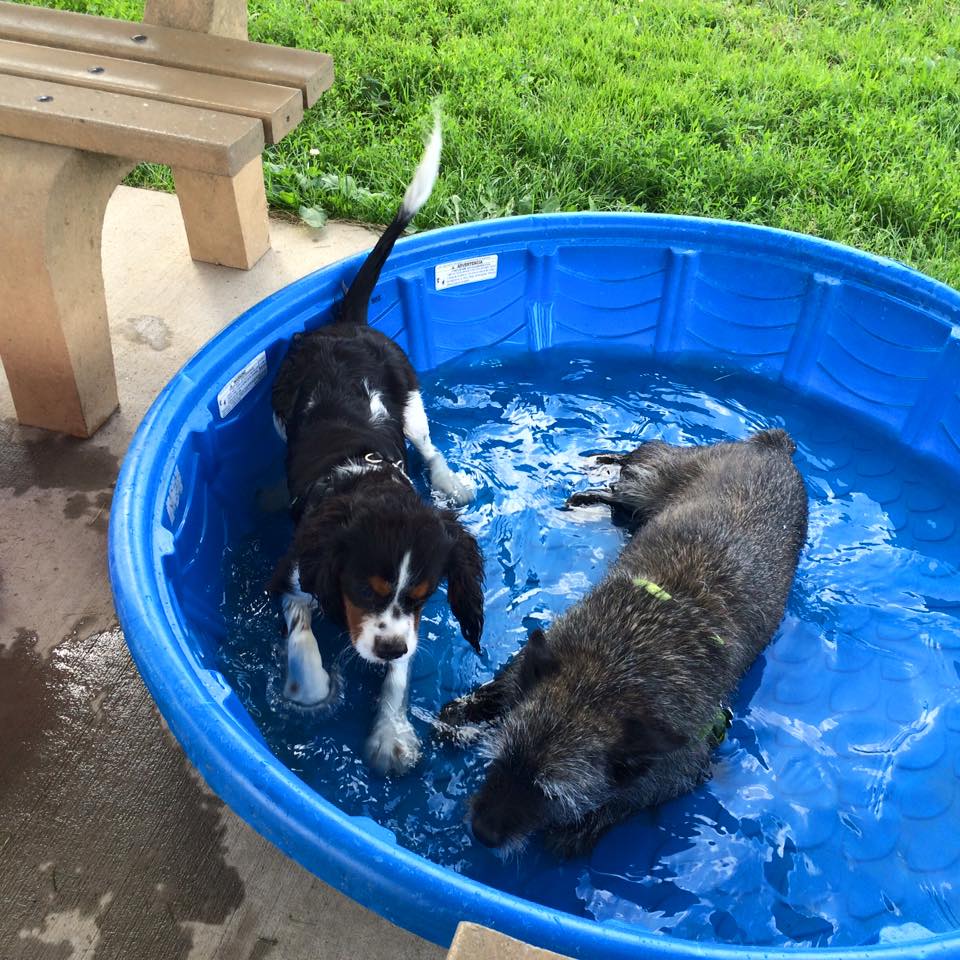 The 11 acre dog park features three separate areas: one for small dogs, Lucky Pawz Playground for all dogs, and Emma' Run Training and Agility Area. There is a large pond about 15 feet deep for use by all dogs. The west side of the pond is shallow where dogs can wade in. All dogs using the park must have a park permit tag.