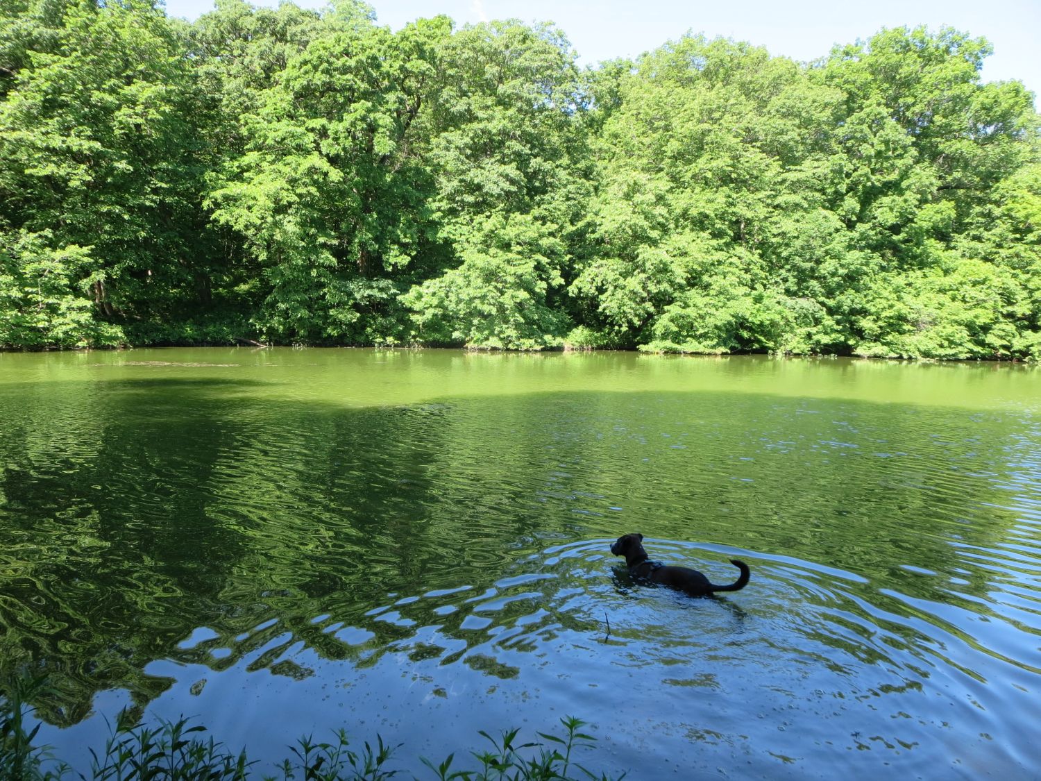 Starting right before Shelter 9 in a large wooded area on the east side of the lake, you will find the trailhead for the WyCo Single Track Trail. From the trailhead there are several options for trails, all interconnect with each other at points along the way and eventually loop back to the beginning. The trails are well marked and you'll find multiple maps along the way so you don't get lost. This is a popular fishing, picnic, and biking area so you will encounter much of this as you walk the trail around the lake. Most of the trails are hard packed dirt, but several sections are gravel and/or rocks. On the West side of the park there is an off-leash dog park.