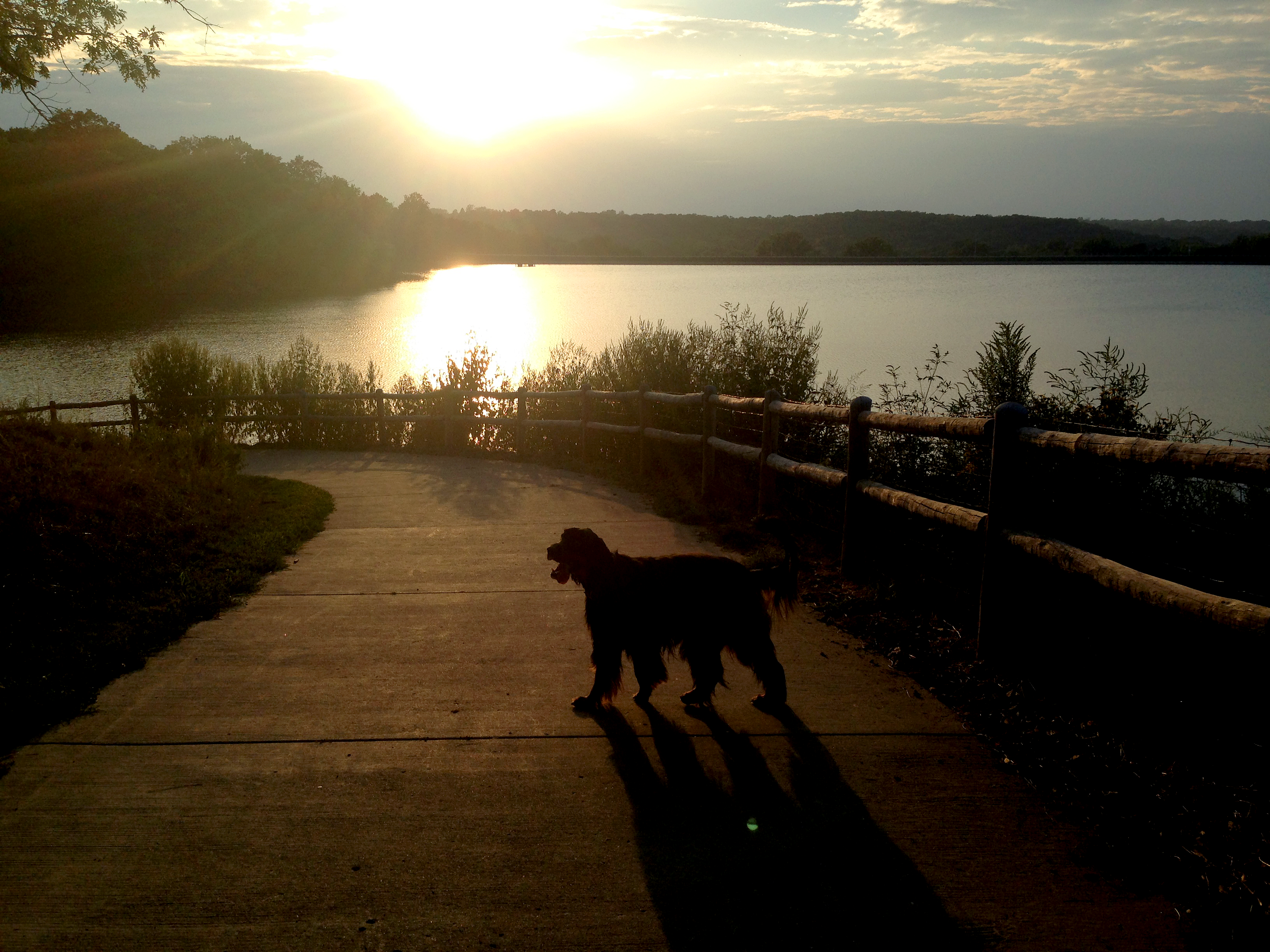 A fun place for your canine family member to run and play! Located east of the observation tower on John Barkley Drive, the 53-acre off-leash area features a dog swim area along with wood chip and natural surface trails through grassland and wooded areas. Our off-leash area also includes paved parking and portable toilets. The area is open year-round during regular park hours except Tuesdays from 5:00 am to 9:00 am for routine maintenance. To view the location of the off-leash area in the park please see the Shawnee Mission Park Map. For the enjoyment of all patrons and pets all JCPRD Dog Off-Leash Area Code of Conduct/Rules apply.