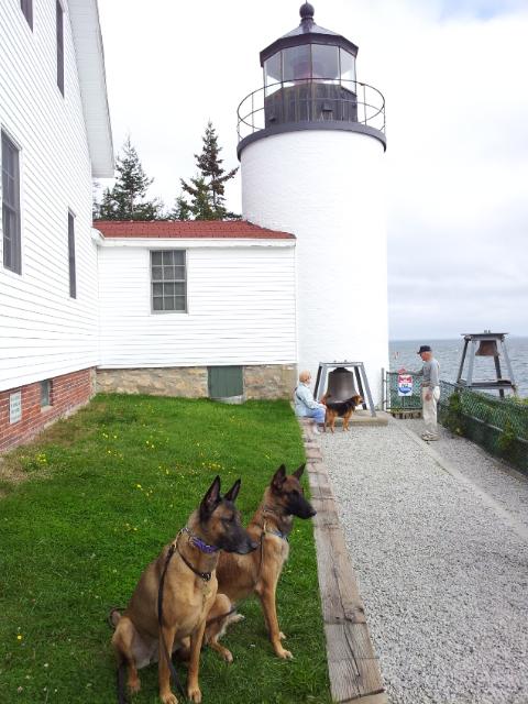 taken from the visitmaine website: "Built in 1858, this is one of the most picturesque and frequently photographed Maine lights. It sits atop a rugged, pink rock cliff surrounded by dark evergreens. Located on the southern end of Mt. Desert Island, it's a cylindrical tower attached to the keeper's house by a short, enclosed passageway. Grounds are open year round." There are so trails and rocks for dogs to climb down on and a few bluffs for great photos. Make sure you are wearing sneakers and not sandals as the rocks are a bit slippery with the dust and dirt on them, and those close to the water are slippery as well... PS a Coast Guard family lives in the keeper's house and asks that their privacy be respected. The light is visible from the end of Lighthouse Road in Bass Harbor or by cruise or plane.. There are 2 rest rooms located in the parking lot BUT there are no sinks in either. Please make sure to bring your own fresh water for you and your dog.