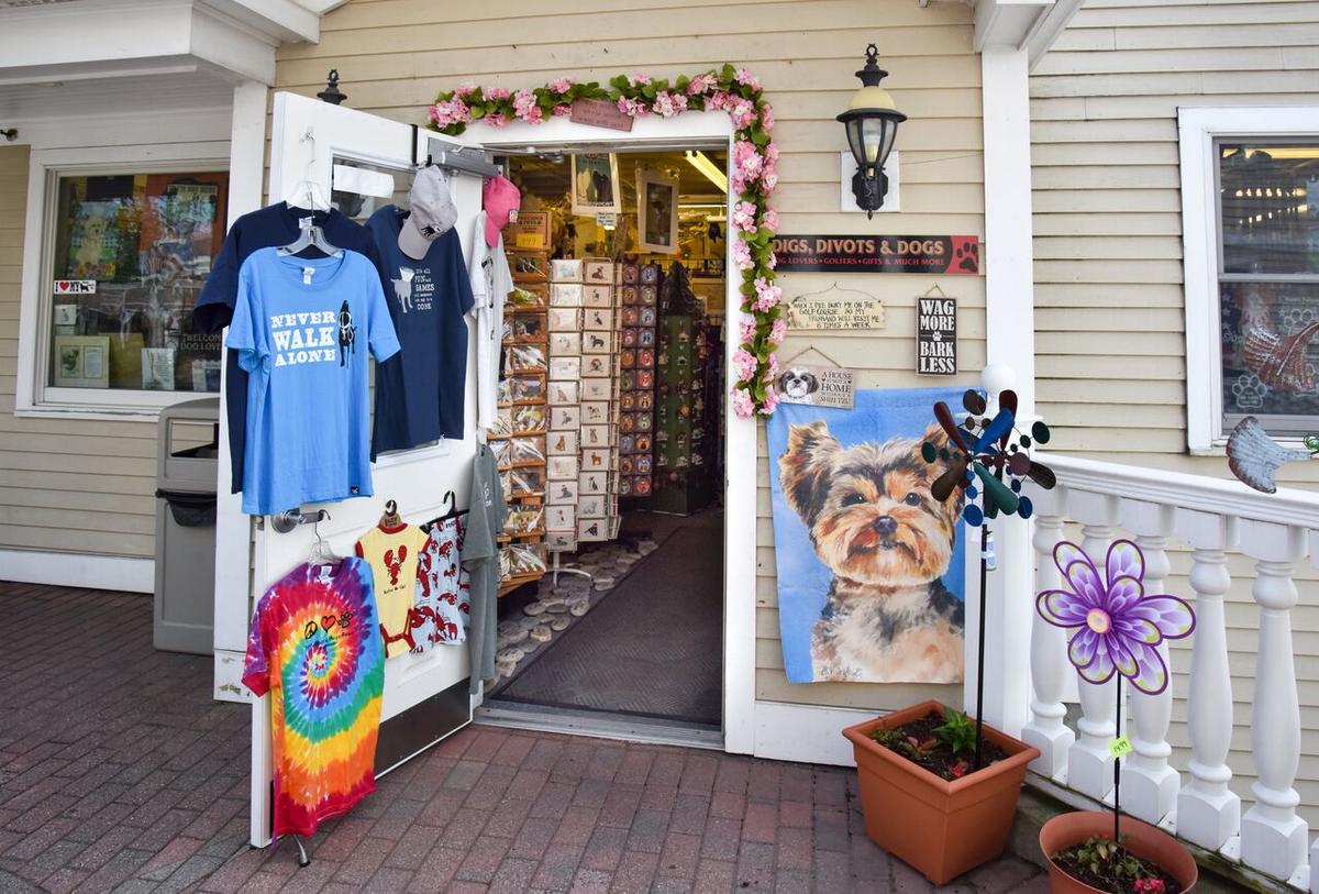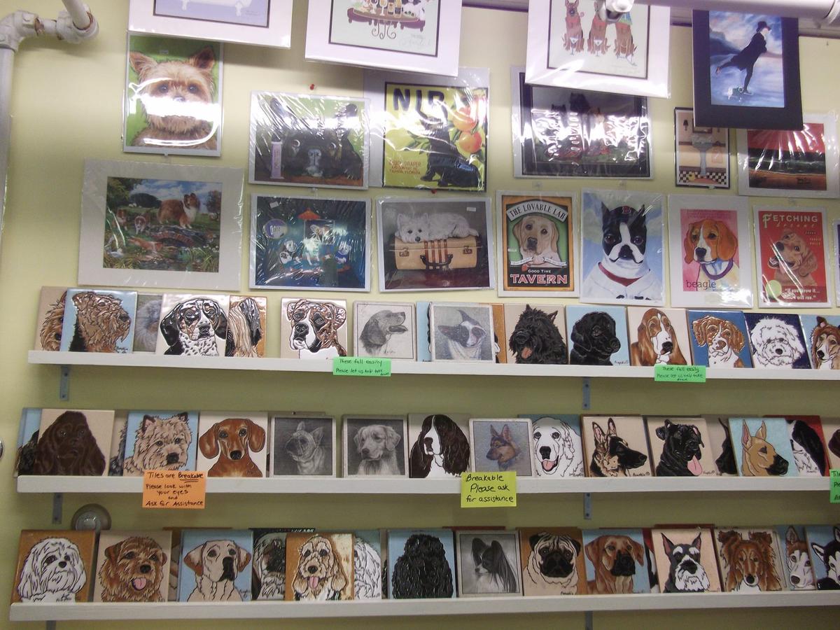 Dogs are welcome at Digs, Divots & Dogs. The dog-friendly shop carries gifts for golfers, dogs, and dog lovers. Over 150 dog breeds are featured on unique, fun, artistic and useful gift items such as socks, t-shirts, Christmas cards and ornaments, prints, stationary, magnets, mugs, frames, and flags. Dog leashes, collars, neckerchiefs, toys, and treats are also sold here.