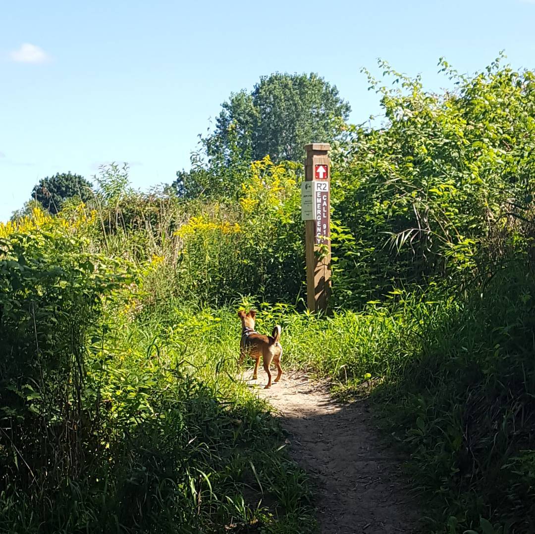 Wahlfield Park is dog friendly! It has nature trails that are flat and hilly, through shade and sun. A small creek runs through it. There is no fenced in area, dogs must be on a leash and owners must clean up after their dog. There are restrooms and a water fountain, children's playground and picnic tables and benches.