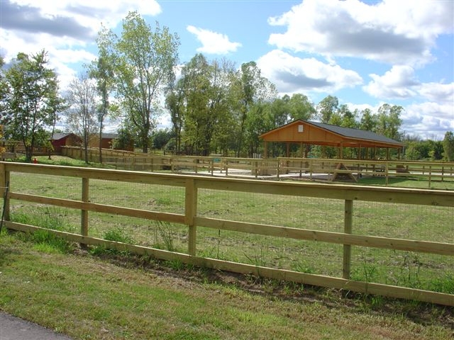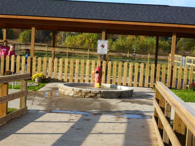 Park with separate areas for large and small dogs, shaded areas, water spigots, and gazebos.