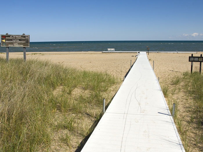 Off-leash dogs are welcome on the trails and the section of shoreline on Tawas Bay between the campground and the lighthouse, enclosed by fencing. Tawas Point has been referred to as the "Cape Cod of the Midwest." The campground is located on Tawas Bay where the water is shallow and warm for swimming. In the park is the Tawas Point Lighthouse which serves as the sole representative of a true Victorian-era style station on the Great Lakes. Dogs are not permitted in buildings or in swimming areas.