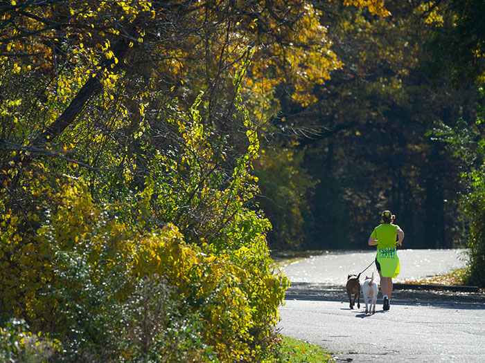 On-leash pets are welcome on the trails. The park, which is located within the northern portion of Oakland County between Pontiac and Flint, is home to three lakes, a campground, a boat launch and the Holly Woods Disc Golf Course and provides opportunities for hiking, camping, fishing, mountain biking and snowmobiling. Dogs are not permitted in buildings or in swimming areas.
