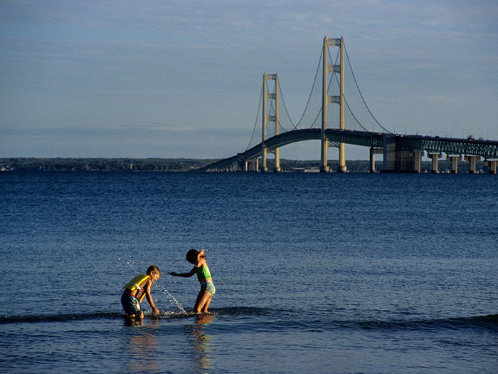 Straits State Park has fantastic views of the Mackinac Bridge and the boat traffic going under the bridge on the Straits of Mackinac from the trails, campground or the viewing platform. The park has a picnic area, playground and waterfront area along Lake Huron. Dogs are not permitted in buildings or in swimming areas.