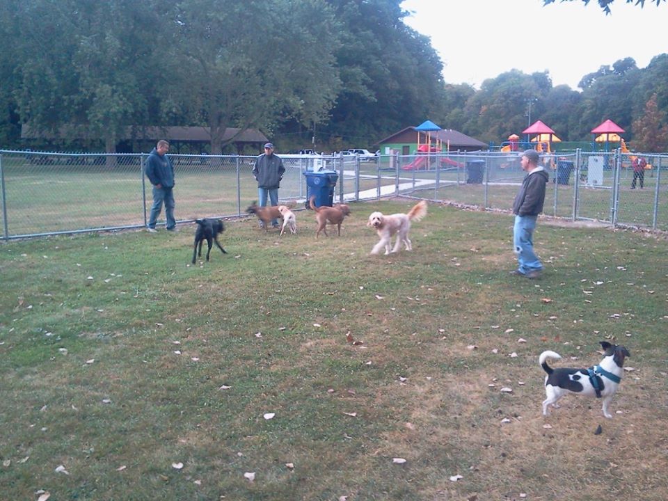 This off-leash park includes a doggie drinking fountain, small dog area, shade trees, and benches where owners can relax.