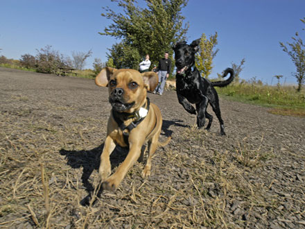 Pets can run around at this fenced dog park, which offers a walking area as well as a smaller running area for small breeds.