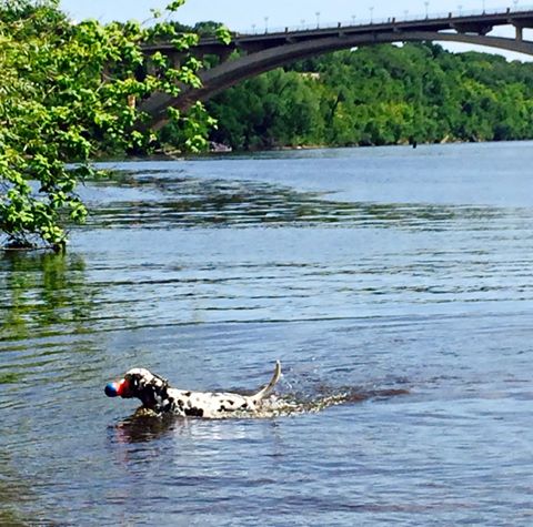 The park is bordered by the Mississippi River and steep bluffs. There is no fence, but under control dogs can play off leash. Park is located just west of Eustice St and Mississippi River Blvd intersection.