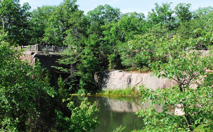 An easy way to see the rocks is from the Braille Trail, which was specially designed for people with visual and physical disabilities. The trail winds through the main area of rocks. An extension off the trail leads back to the ruins of an old railroad engine house, a remnant of the area’s quarrying and railroad history.