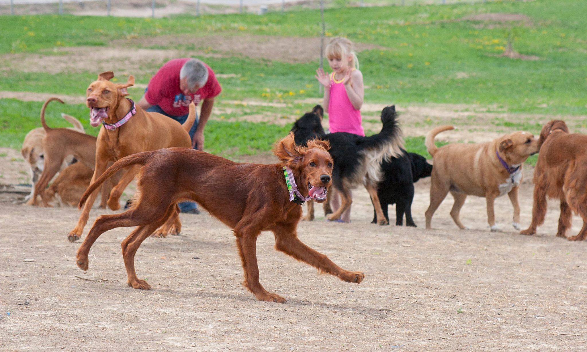 Hanscom Park Dog Park has a small dog area, a large dog area, and an area for regular use. There is a water fountain onsite but it is only on between Memorial Day and Labor Day. The park is located on a hill and there are several trees to provide shade to visitors.