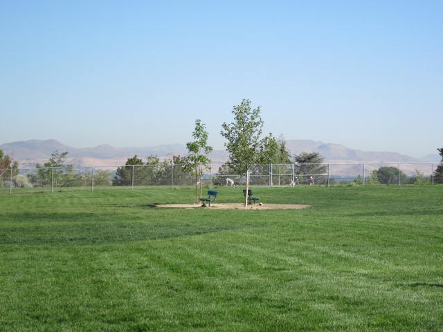 This fenced dog park is a safe, friendly place for your pet to run and play off-leash. Includes separate small dog area, water fountain, and waste stations.