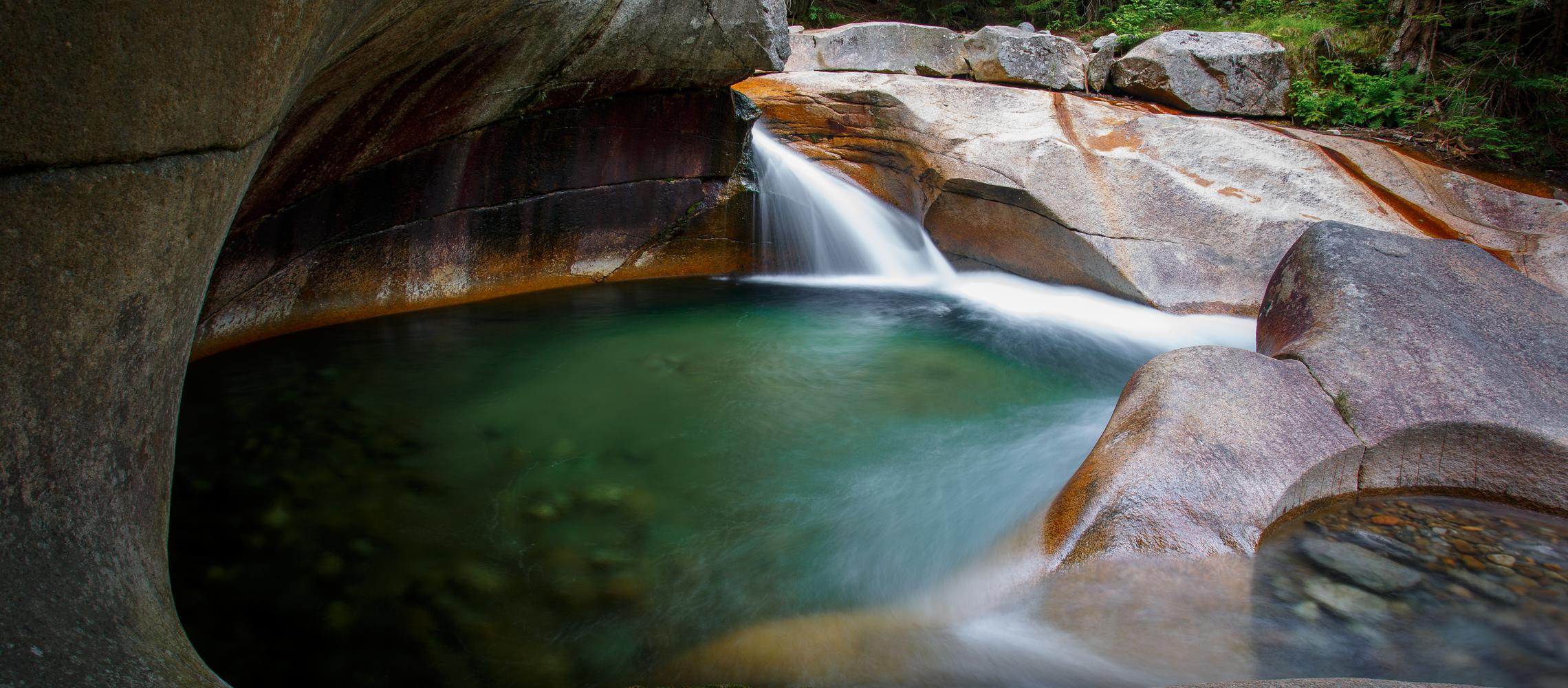 Franconia Notch State Park allows dogs on trails if on leash or under direct voice command.