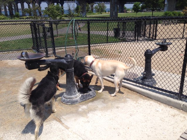 Two separate areas for big and small dogs. Doggie water fountain available.