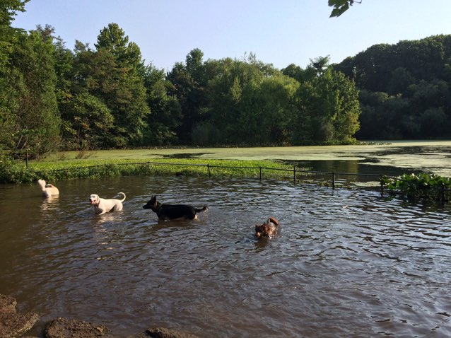 This dog-friendly public park allows pets off-leash in designated areas at certain times of day. They are welcome on-leash all the time and must be leashed on pathways and in wooded sections.