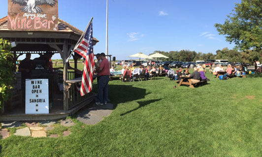 Bring Fido to Osprey's Dominion Vineyards to enjoy a glass of wine made with the least interference from humankind. Osprey's Dominion allows leashed pets on its four-acre grounds, which feature shaded picnic tables, Adirondack chairs, lawn games, and more. Dog owners are invited to pack their own picnic lunch. During the cooler months, dogs are allowed inside the tasting room. Osprey's Dominion's tasting options include $8 for three wines and $12 for five wines. Osprey's Dominion Vineyards' hours vary seasonally so guests should check its website or call ahead before planning their outing.