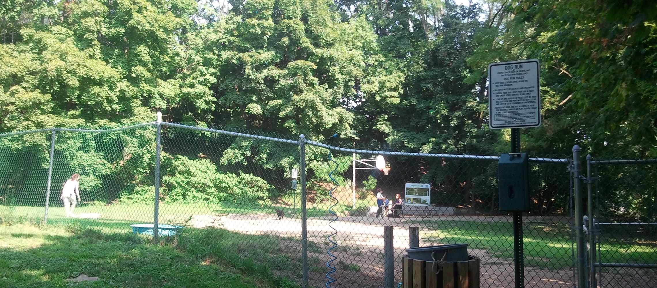 Located on the west side of I-87/287, this dog park is tucked behind a small grassy children's play area just off Elizabeth Place. There is a fenced in area with trees, hillside, and open area. Water is provided.