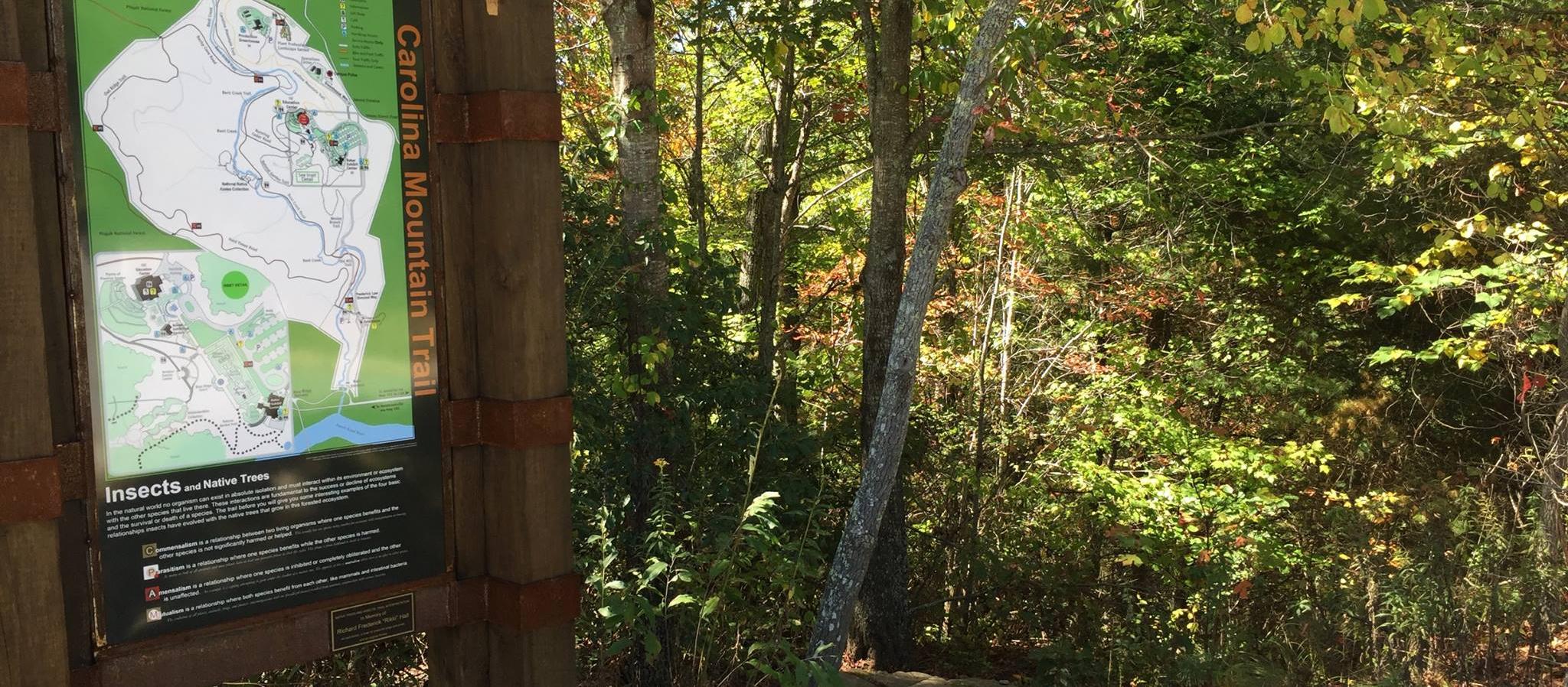 Carolina Mountain Trail is an easy, 2.4-mile hike in the North Carolina Arboretum that will take about one hour to complete with Fido. This gentle trail is perfect for those looking for a nice stroll through the woods with their pup. It starts behind the education center. Dogs are not allowed inside the center. Dogs must be leashed at all times.