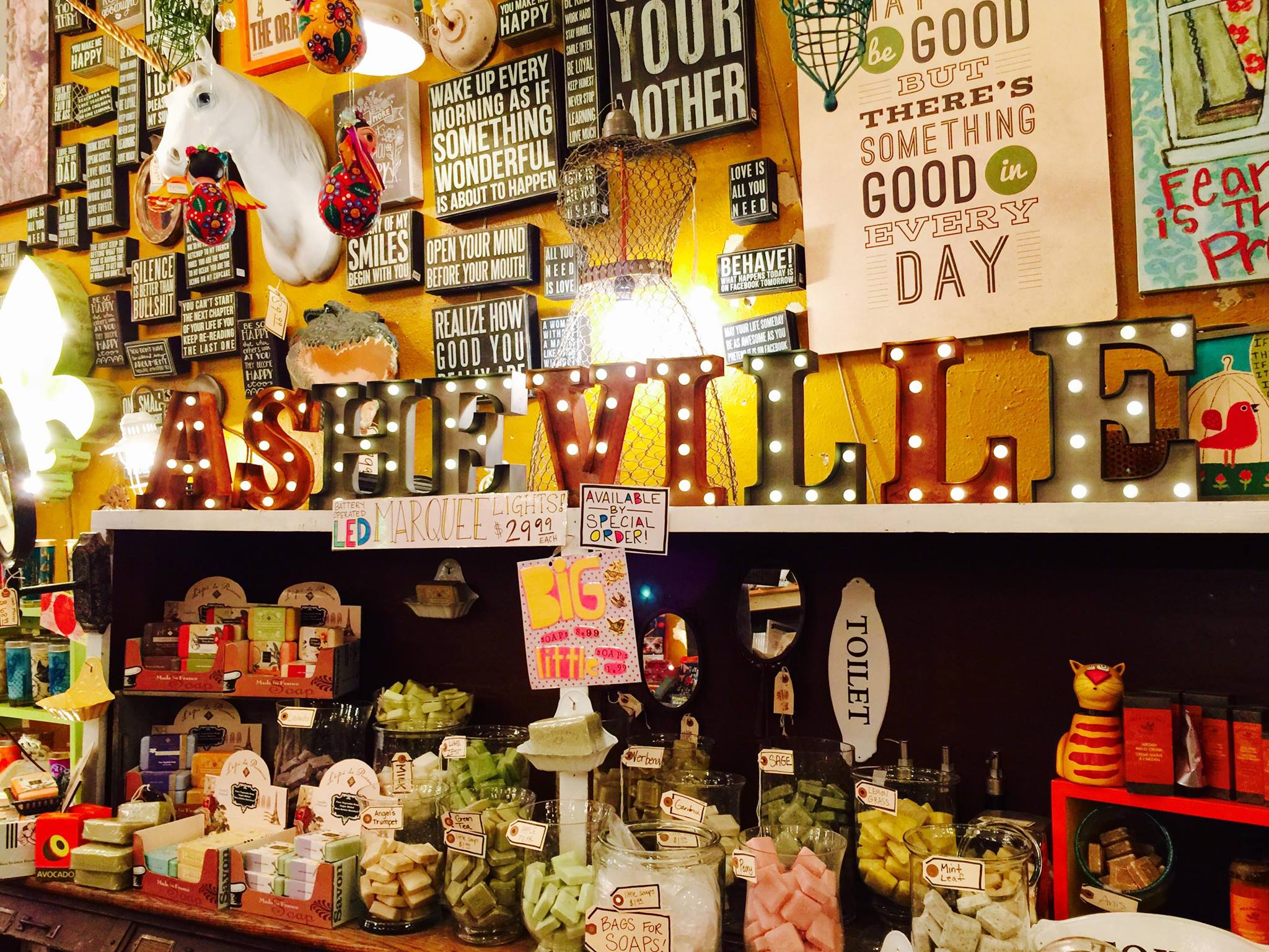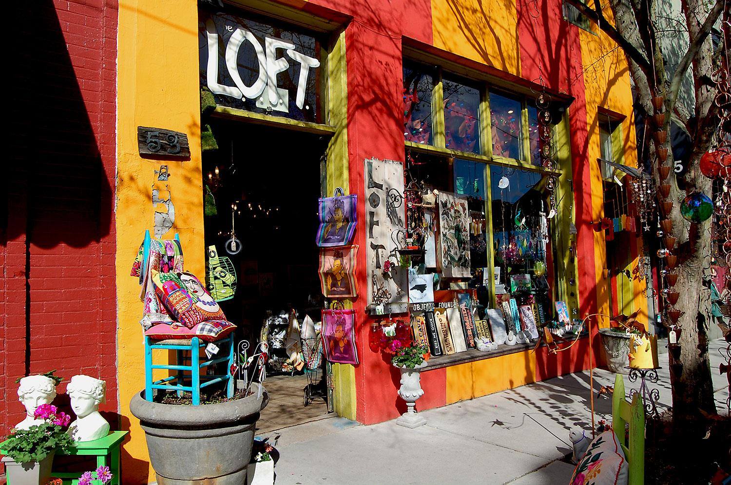 L.O.F.T. is a unique gift shop in Asheville with something for everyone. Browse apparel, antiques, local art and jewelry, housewares, furniture, bath products, candles, inspirational items, children's items, vintage pieces, and adult items, and more. Bring Fido into the shop with you as you search the shelves for the perfect item. You never know what you'll find at this quirky shop!