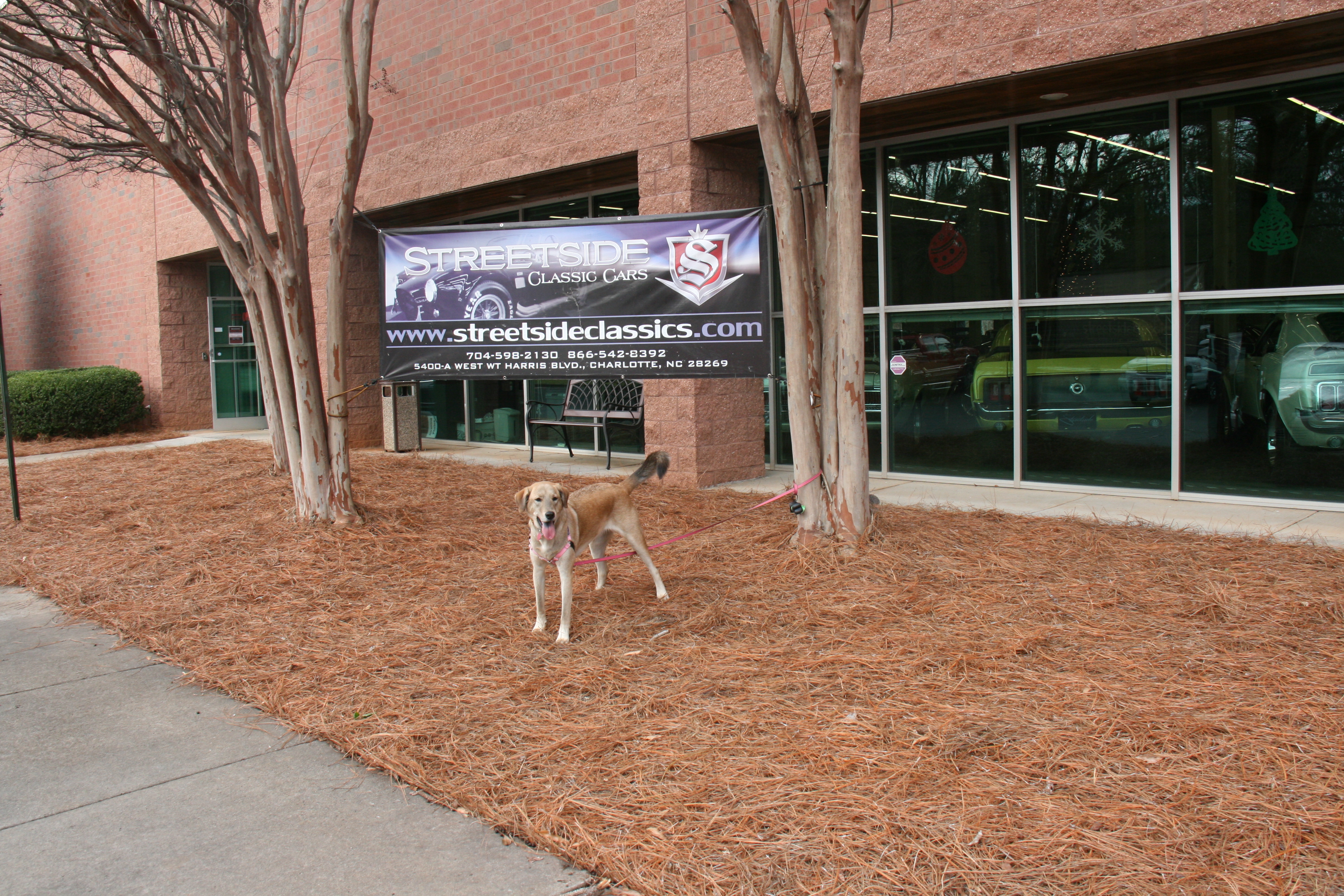 Streetside Classics is a car sales business but they welcome well-behaved leashed dogs to walk around their showroom. Please call ahead to check whether you can bring your dog when visiting the showroom.